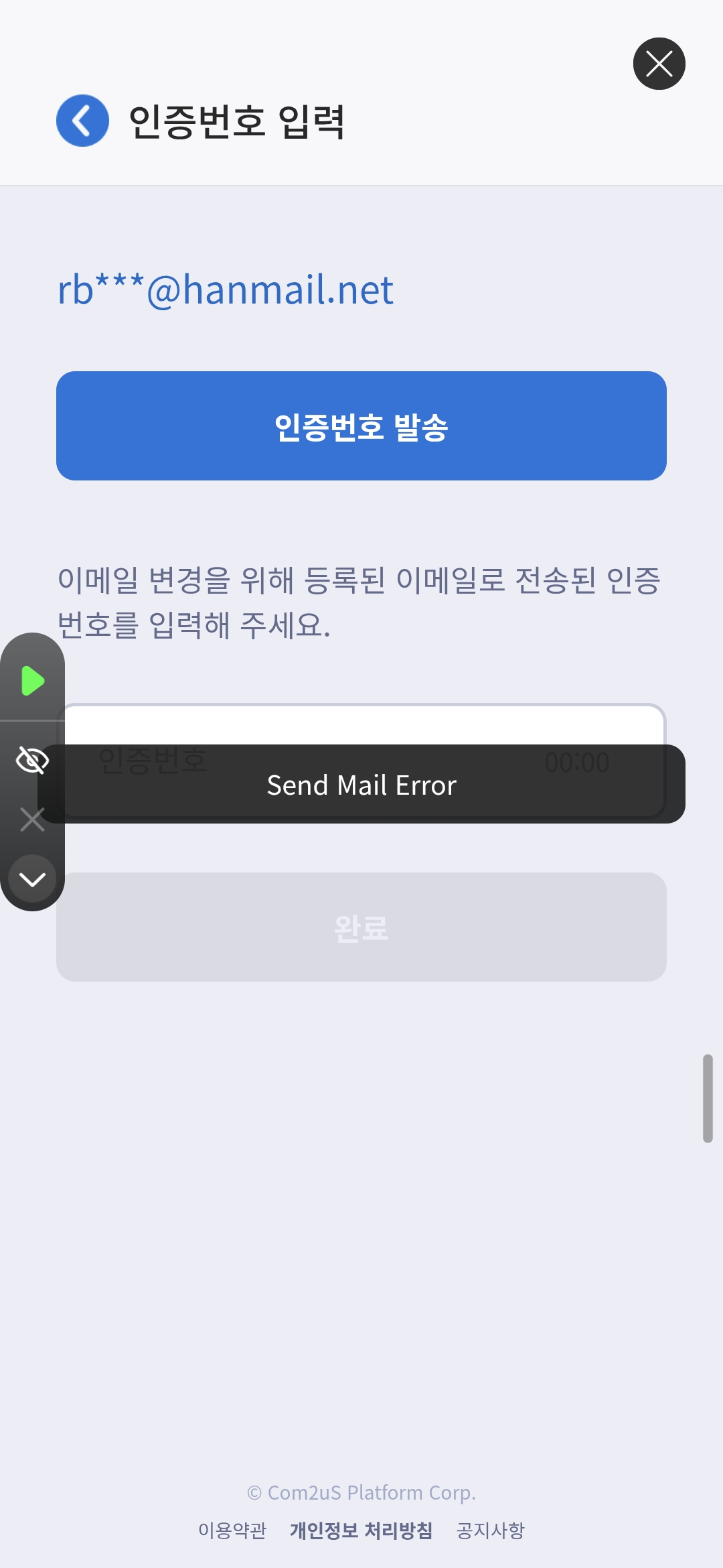 그리고나서 원래폰으로 인증 이멜이라도 변경해볼라고 들어갔는디 똑같은 send mail error 나오네요 무슨 문제가있는건가요