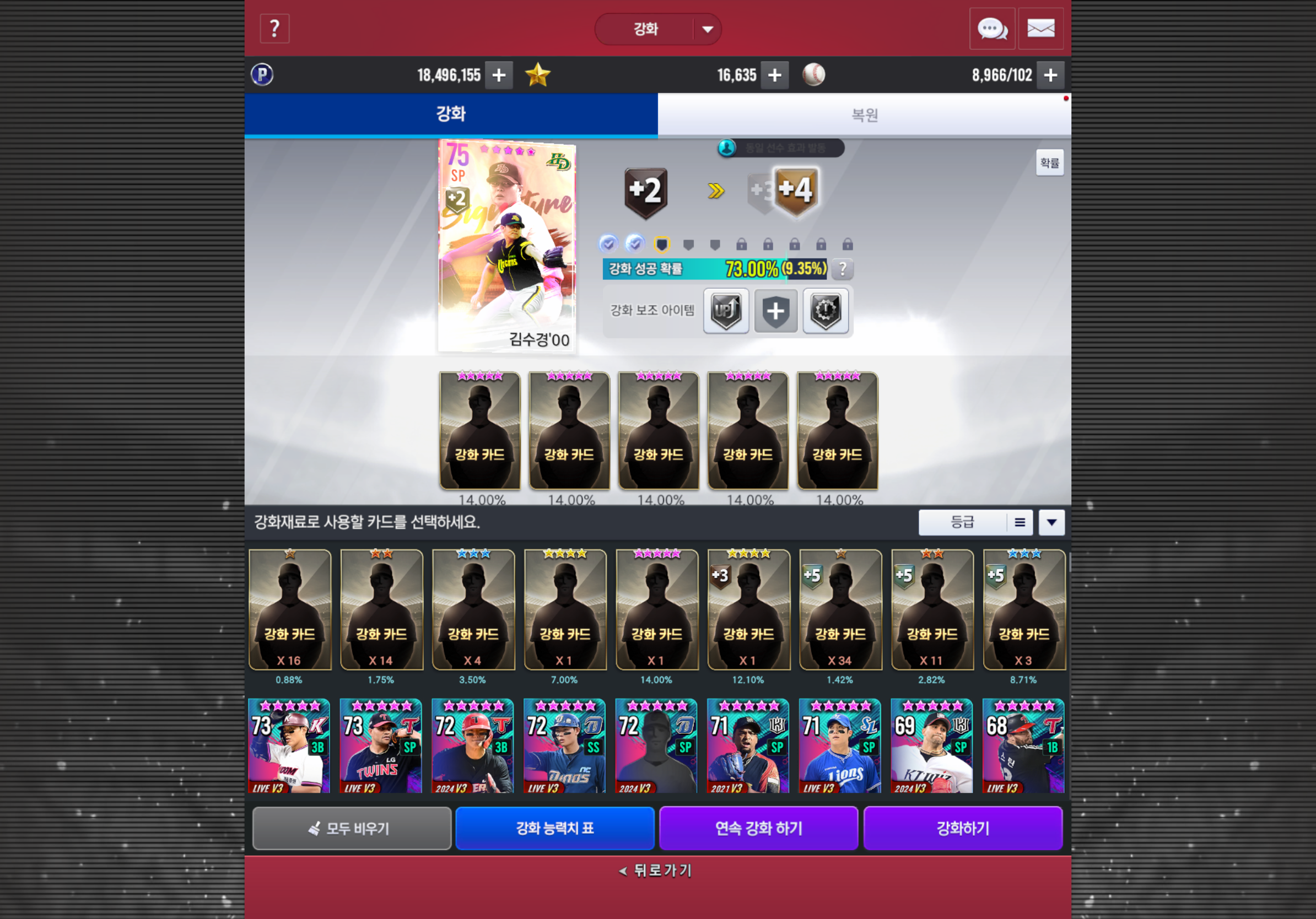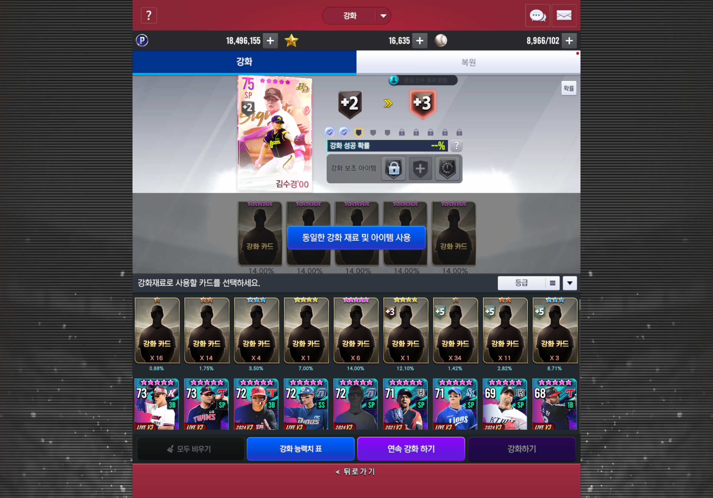 선호구단에서 21번 돌려서 뽑은 건데 강화 확률도 ㅈ같네 제발 죽어주세요