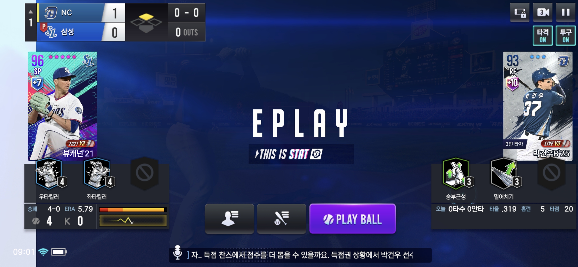 리플레이 나오다 투구ON/OFF 누르면 리플레이 화면 나온채로 게임 진행됨