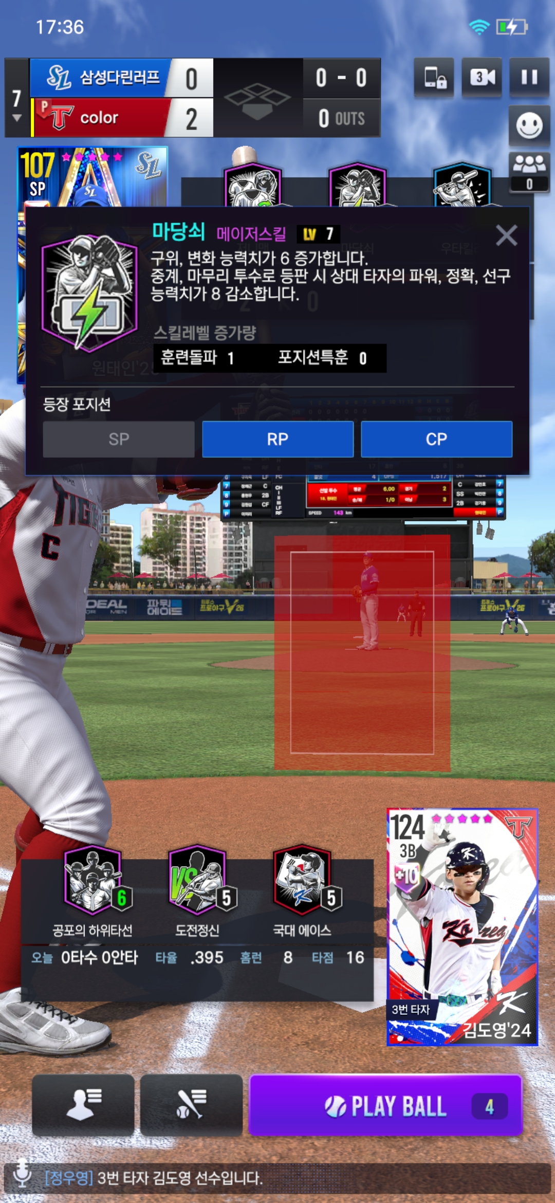 실시간 대전중 발생된 버그로 선발투수의 스킬에 마당쇠가 포함되어 있었습니다