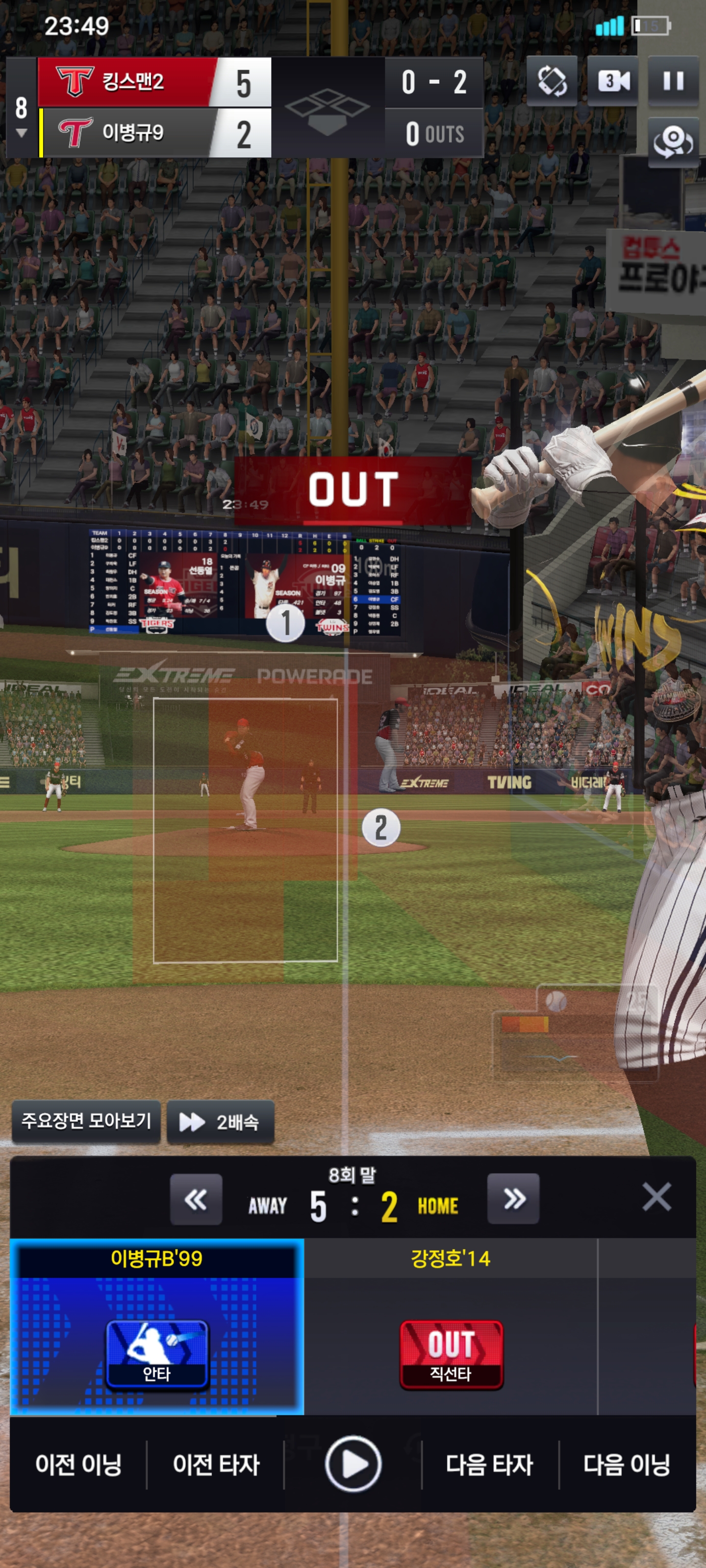 이병규 타석 아웃인데 다시 타석에 들어와서 안타침