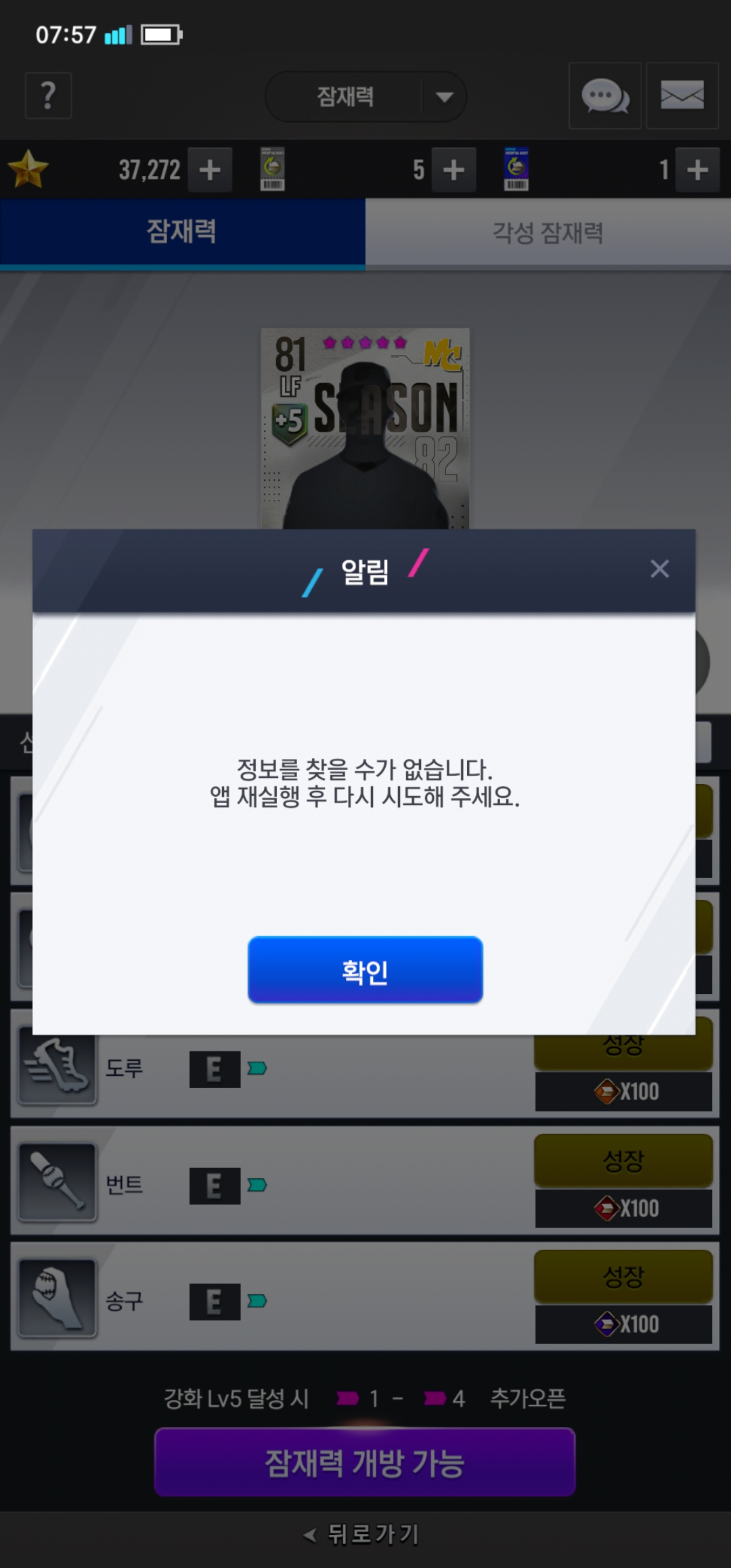 버그 제보 잠재력 개방 오류 구단명변경귀찮 2026-03-24 07:59 85 0 공유 공유 URL 복사 페이스북 왓츠앱 카카오톡 라인 레딧 닫기 공유 82백인천 잠재력 개방 시 지속 오류 발생합니다. 0 0 댓글 0