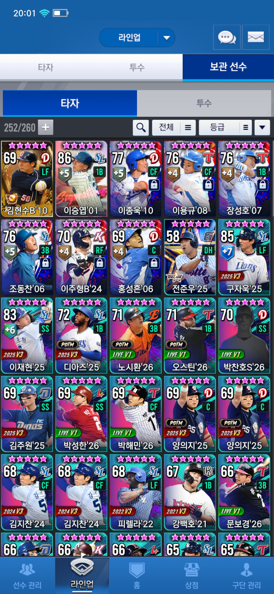 위에 보이는것처럼 10김현수로 1차교환을하려했는데 재료리스트에 뜨질안네요 후원사에도 들어가있지 않습니다.