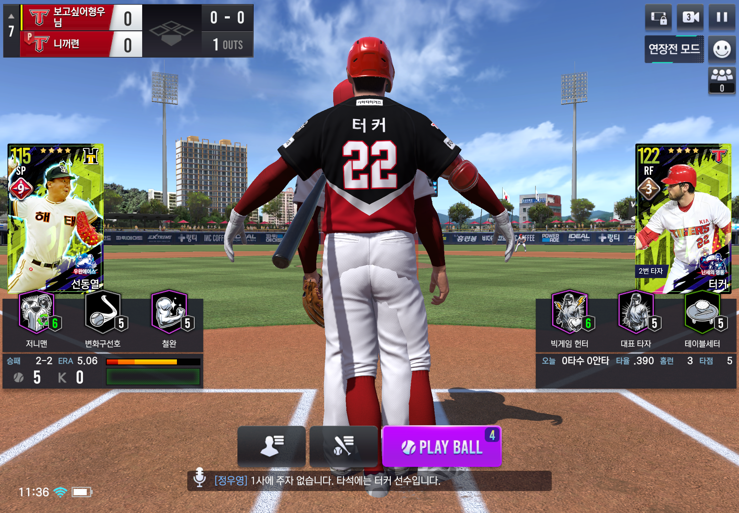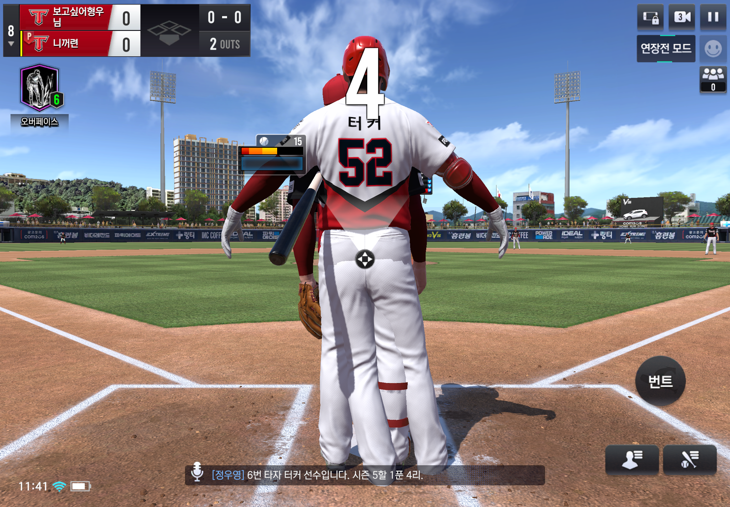실시간 대전에서 타자, 투수로 플레이 할때 첫 타석에서 타자랑 투수가 합쳐져서 시야를 가리는 버그가 있습니다