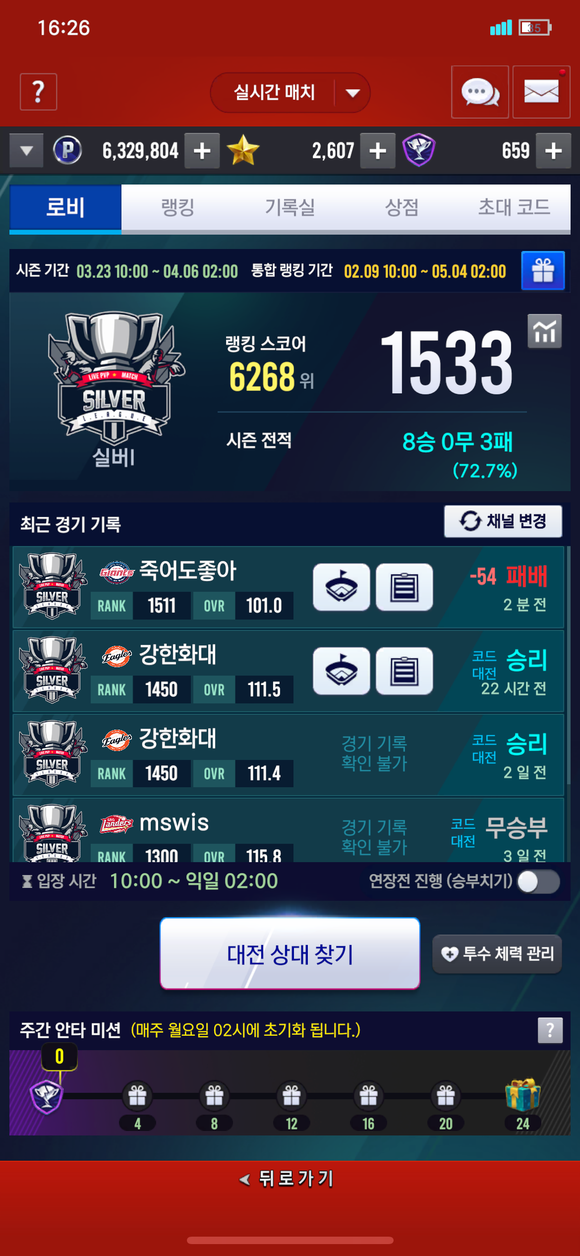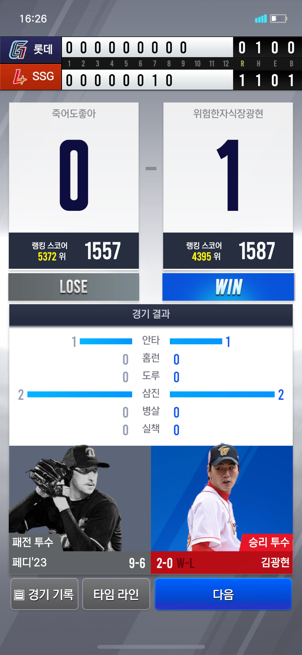 아웃카운트 다 잡은 경기 갑자기 화면이 멈추고 아무것도 클릭이 안되더니 패배 처리 되었네요. 확인부탁드립니다..