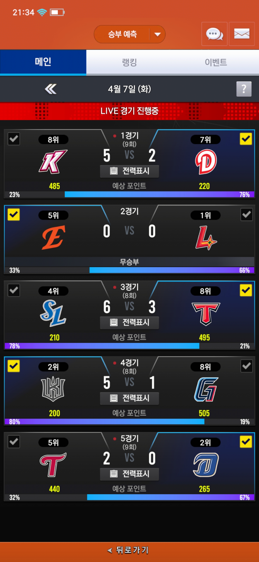 버그 제보 승부예측 Dday한화 2026-04-07 21:36 69 0 공유 공유 URL 복사 페이스북 왓츠앱 카카오톡 라인 레딧 닫기 공유 한화가 이겼는데 왜 무승부로나옴? 0 0 댓글 0