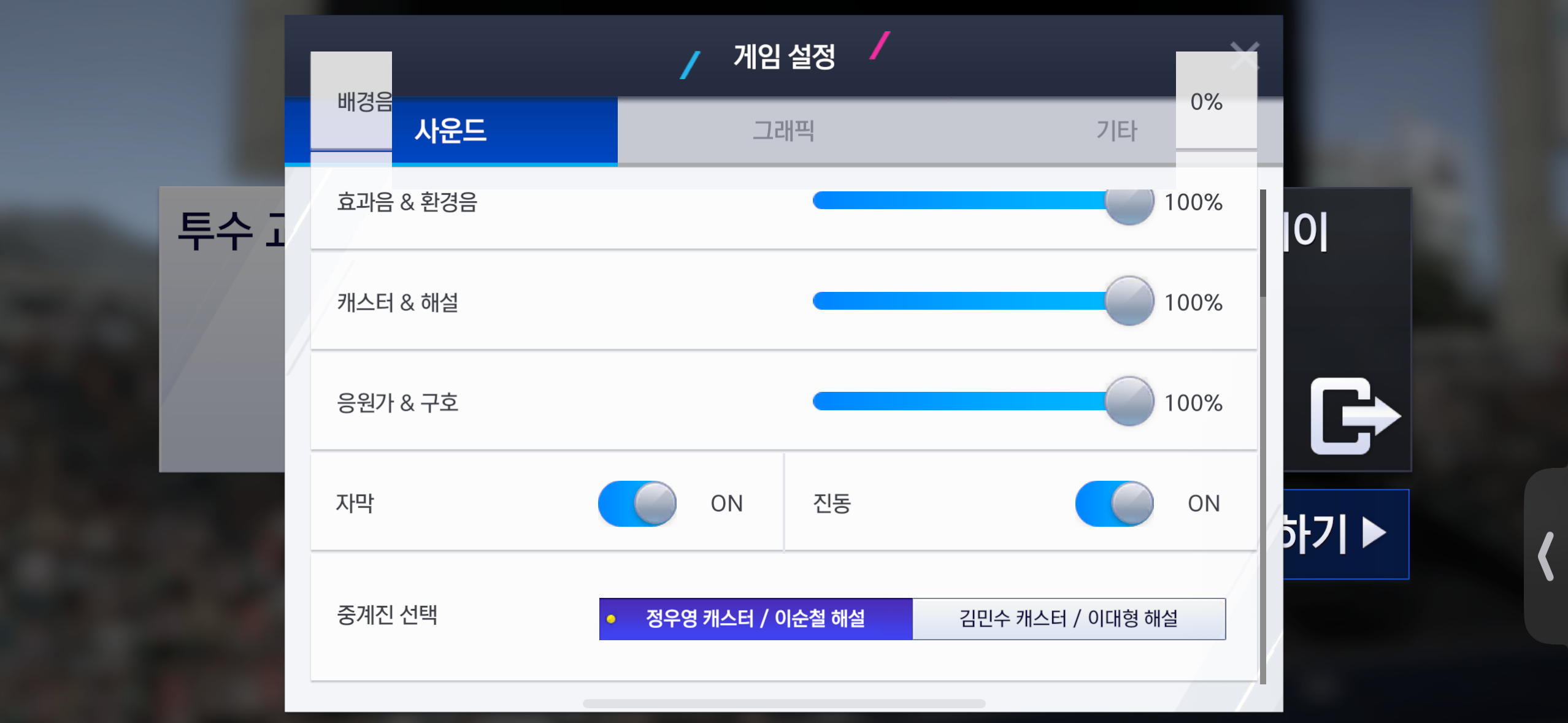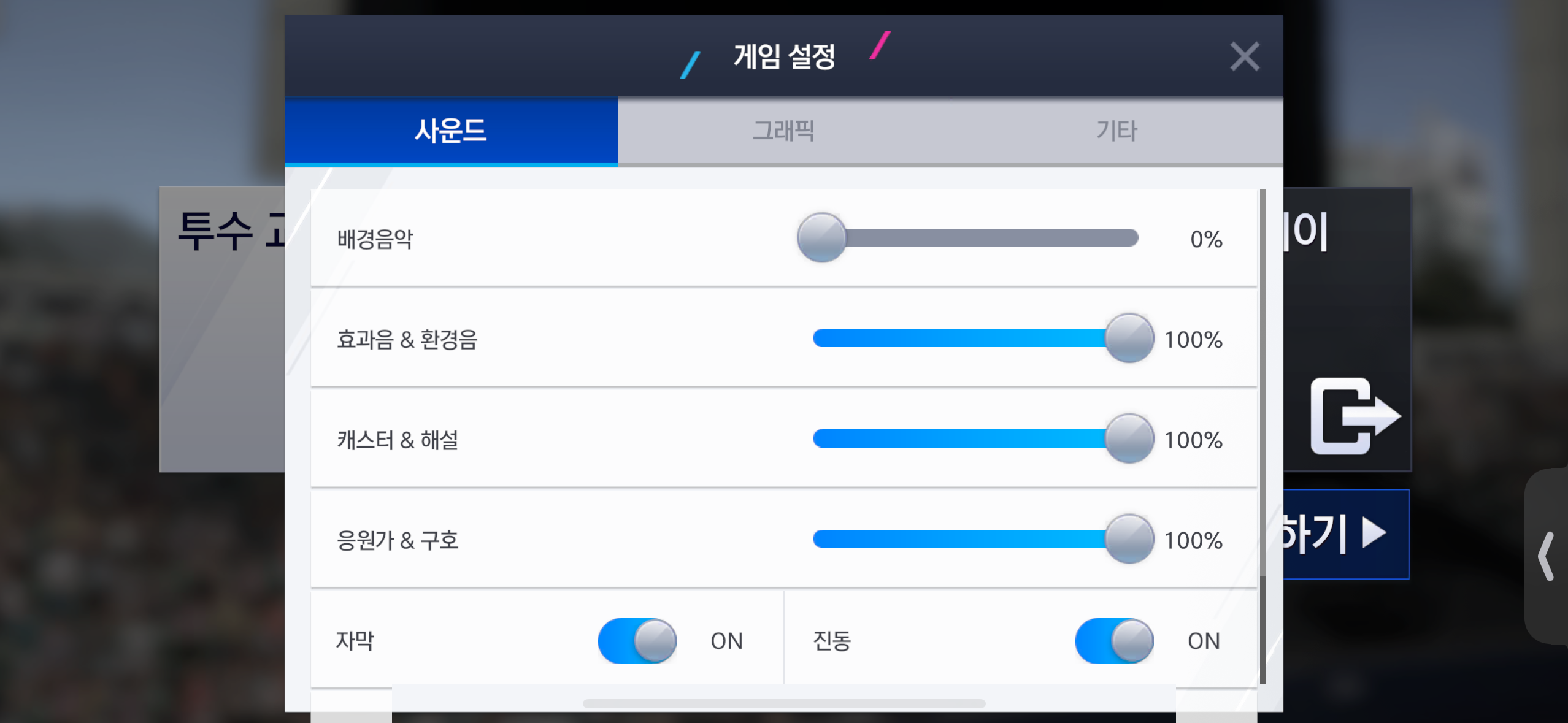 사운드, 기타 버튼 위로 표시되는 오류가 있습니다.