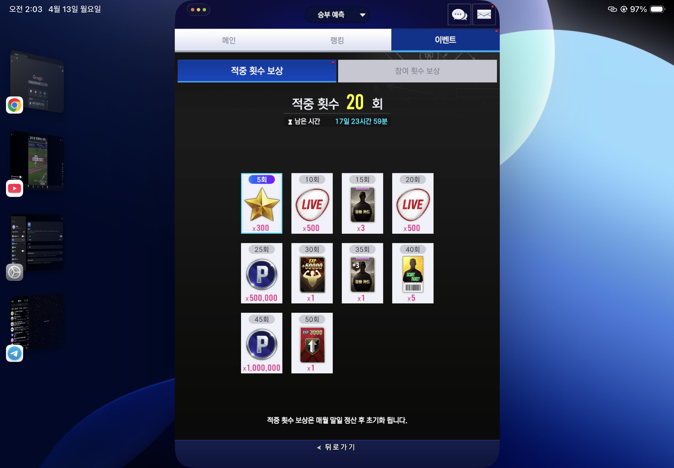 승부예측 적중보상 왜 횟수 올라가고 보상은 안열림?