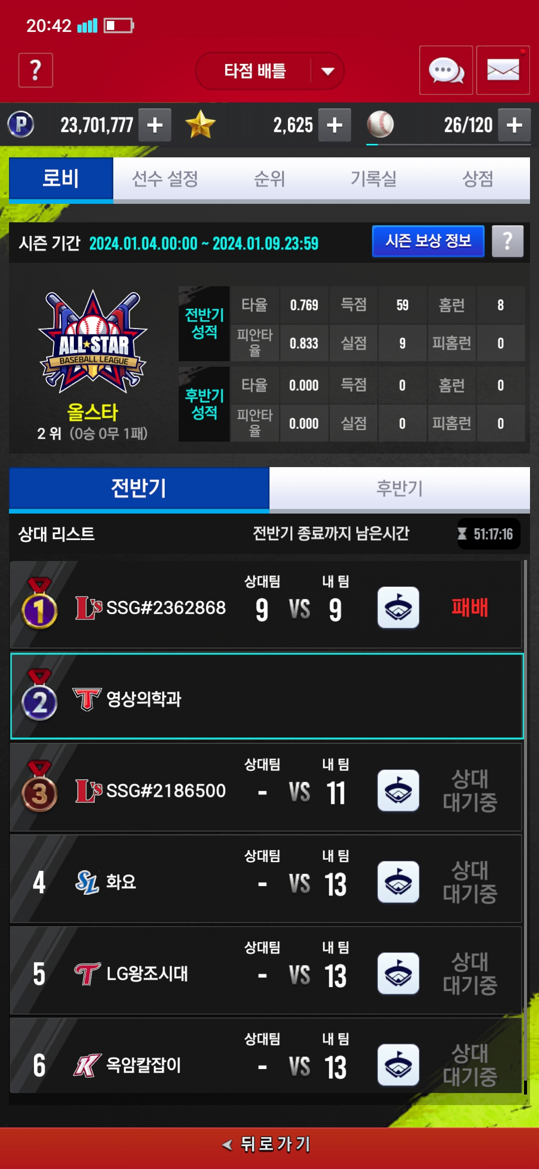 버그 제보 타점배틀 문제 영상의학과 2024-01-04 20:44 161 3 공유 공유 URL 복사 페이스북 왓츠앱 카카오톡 라인 레딧 닫기 공유 9:9 가 무승부지 패배인가요?승부차기도 있나요? 0 0 댓글 3
