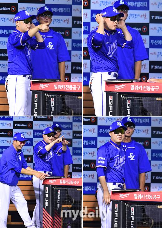 이런씩으로 더그아웃에서 감독이 비디오판독하는 모습입니다!
