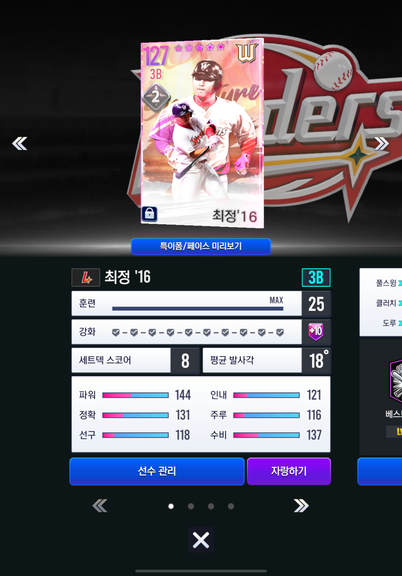최정 올스타쓰다가 시그니처카드로 바꿨는데 시그니처 카드에도 승리의 최정 응원가가 나오면 좋겠네요.(응원가 듣다가 안나오니까 많이 허전합니다..)