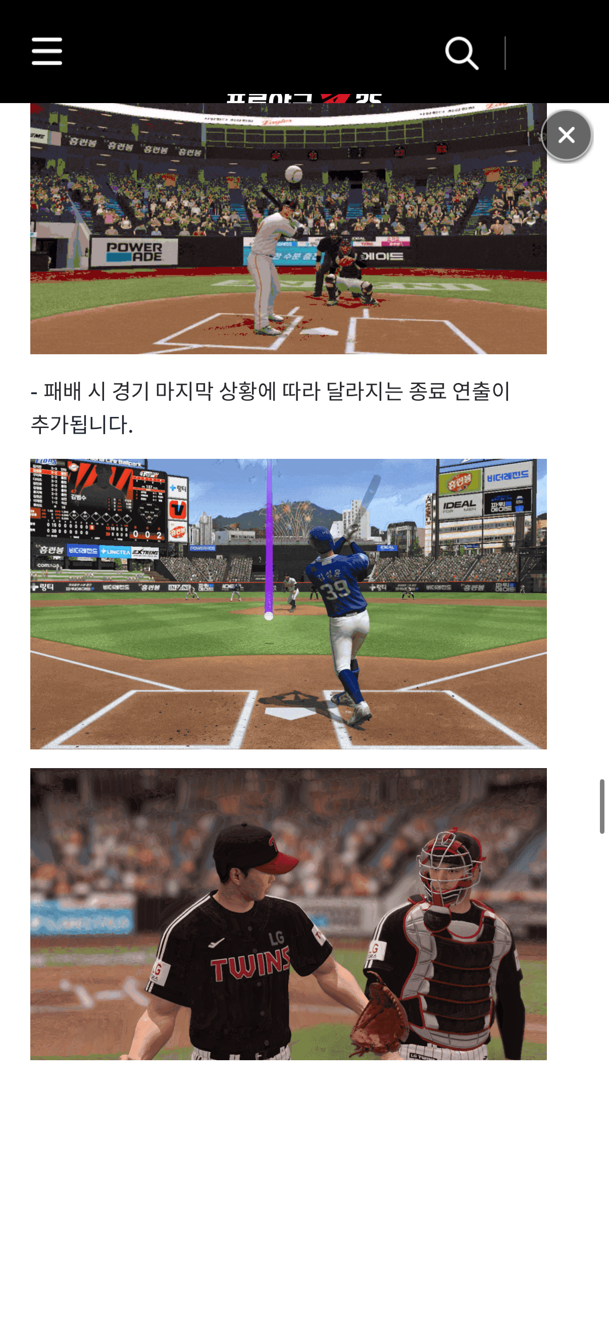 이번 업데이트 보니까 패배일 때만 추가하셨더라고요 패배할 때 말고도 승리할 때 추가해주시면 좋겠습니다 솔직히 삼진, 땅볼, 뜬공 등 마지막 아웃카운트 올릴 때 투수가 포수랑 같이 하이파이브하고 뒤로 돌아보지 어떤 투수가 포스말고 3루부터 인사합니까.. 담 업데이트 때 승리 시 모션 추가해주셨으면 좋겠습니다