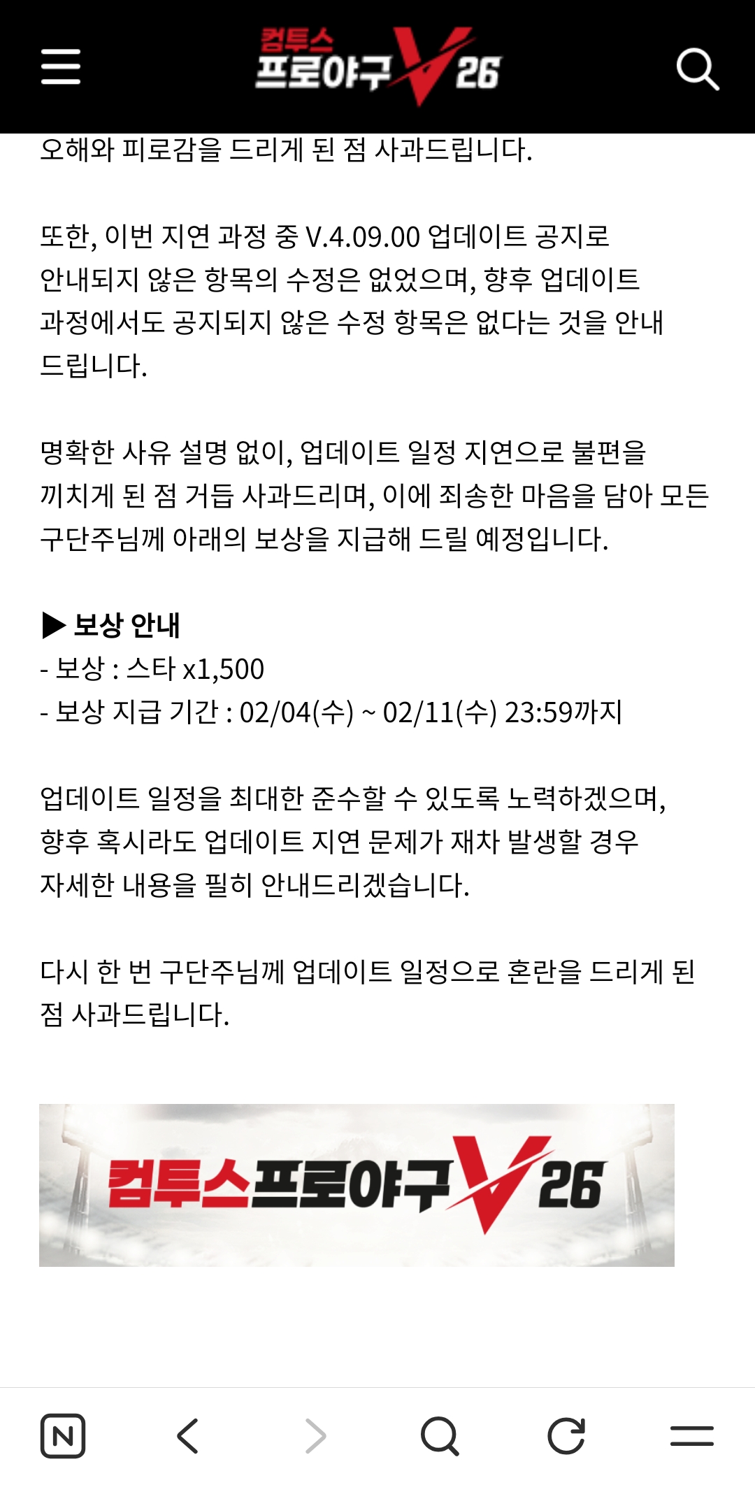 업뎃 지연에대한 유저들 앞에서의 사과와 더 많은 보상