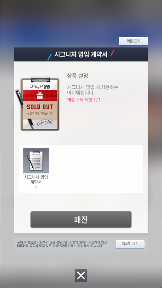 시그니처 영입 계약서더라구요 혹시 1500스타 다시 받을 수 있을까요? 아직 사용도 안했고 방금산거라.. cs코드 필요하시다면 적어드리겠습니다.