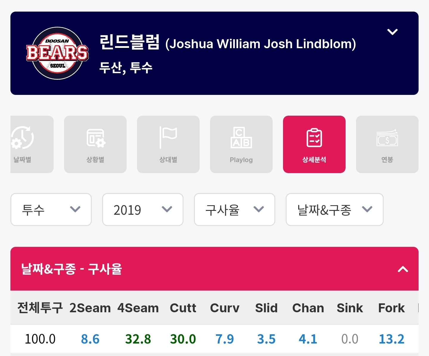 18, 19년 모두 커터 비중이 상당히 높은데 왜 없는걸까요