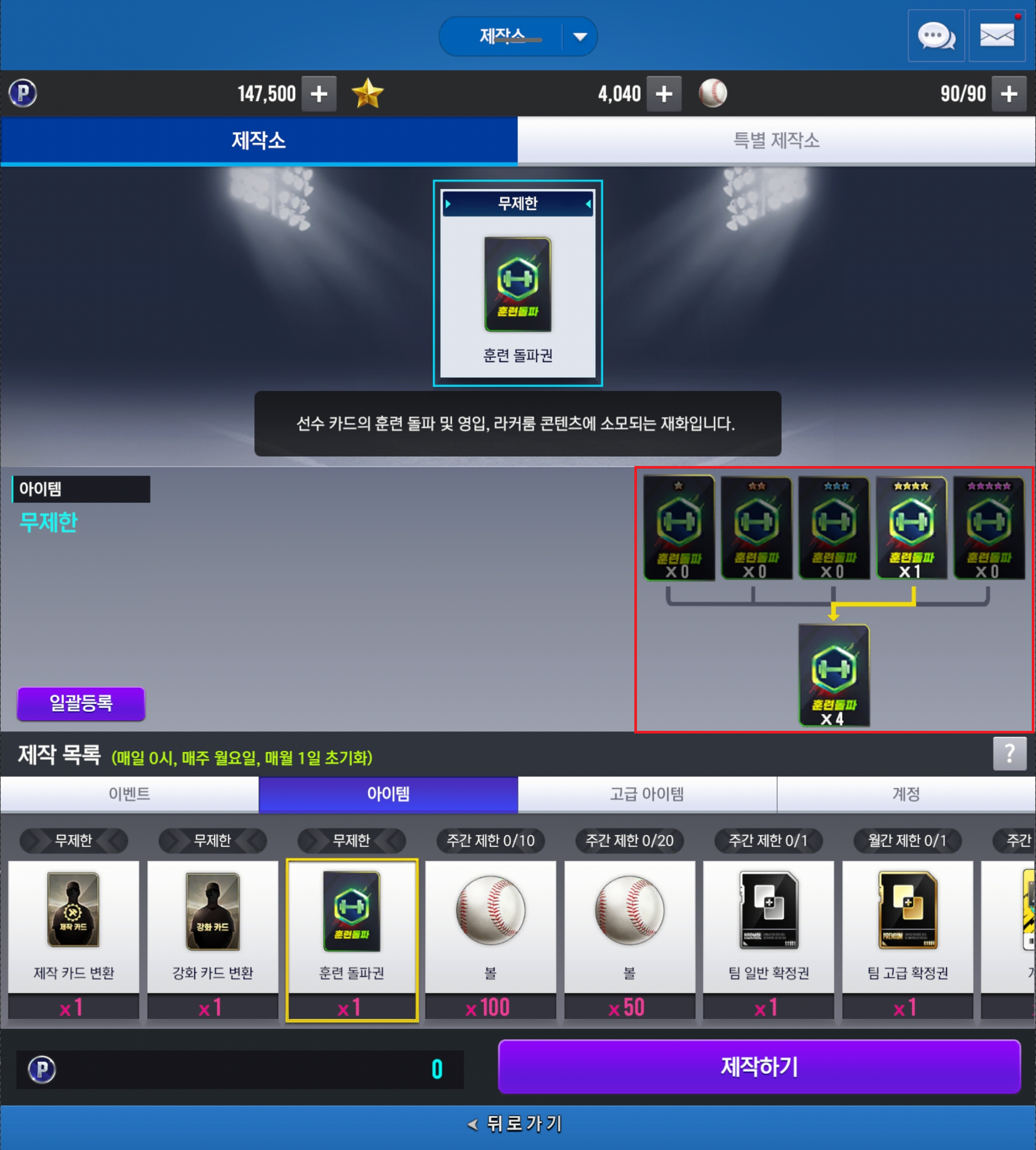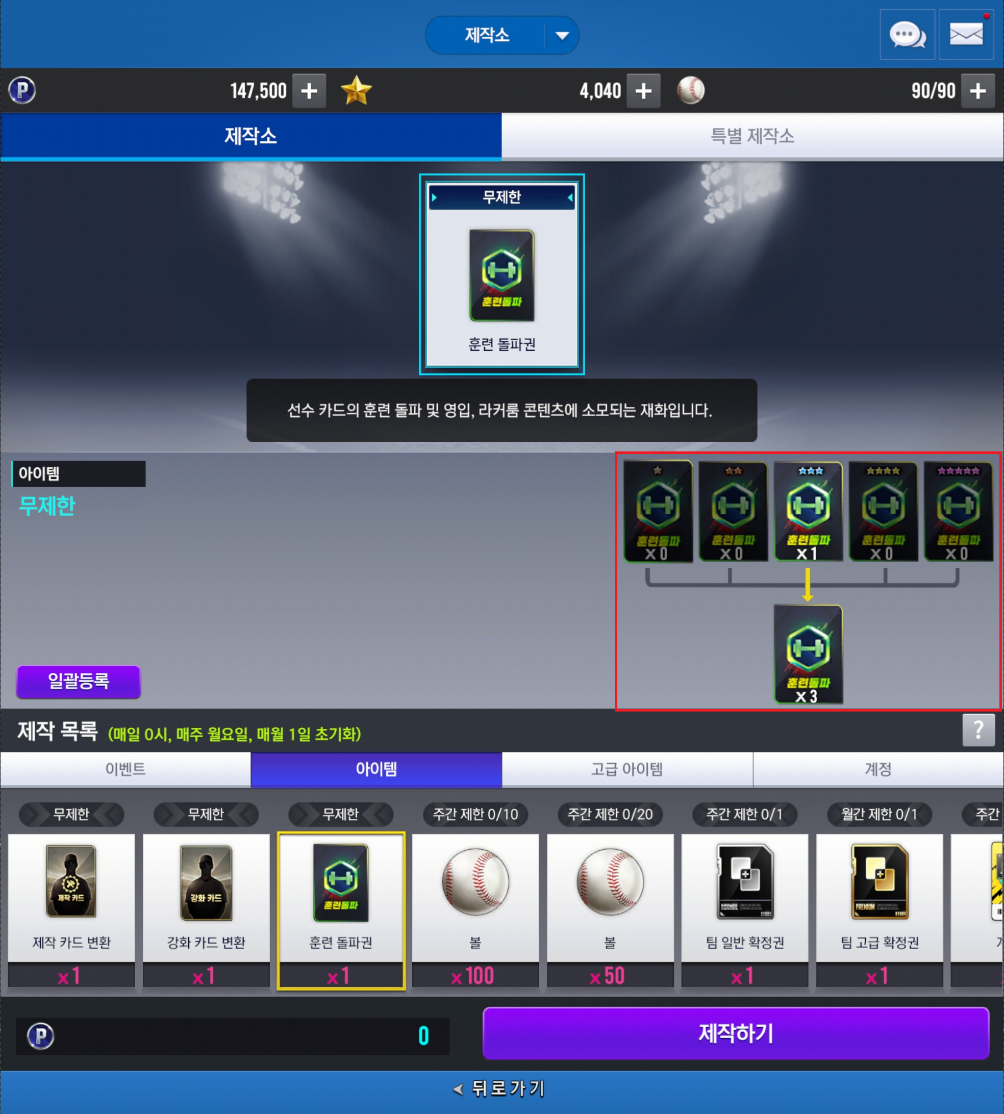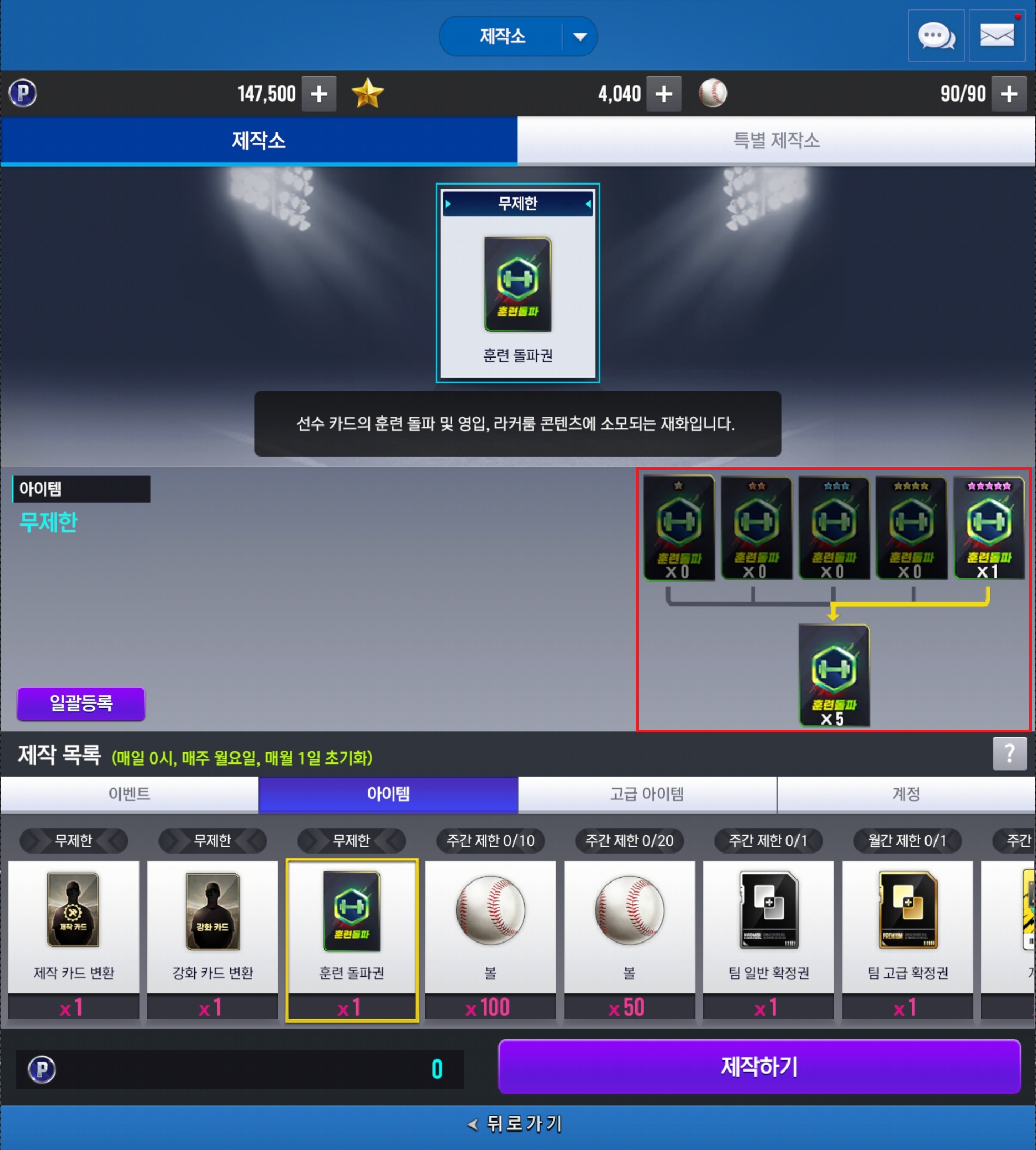 - 기존 보유한 1~5성 훈련 돌파권은 제작소 - 아이템 내 '훈련 돌파권 변환'을 통해 변경이 가능합니다.