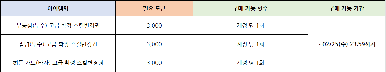 ※ 신규 스킬 [부동심(투수)]를 획득할 수 있는 [부동심(투수) 고급 확정 스킬변경권]은 일정 기간 동안 조커 코인 상점에서 획득하실 수 있습니다.