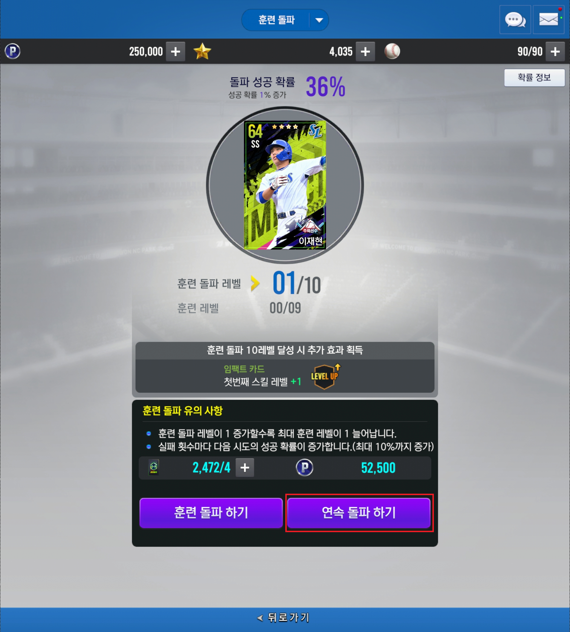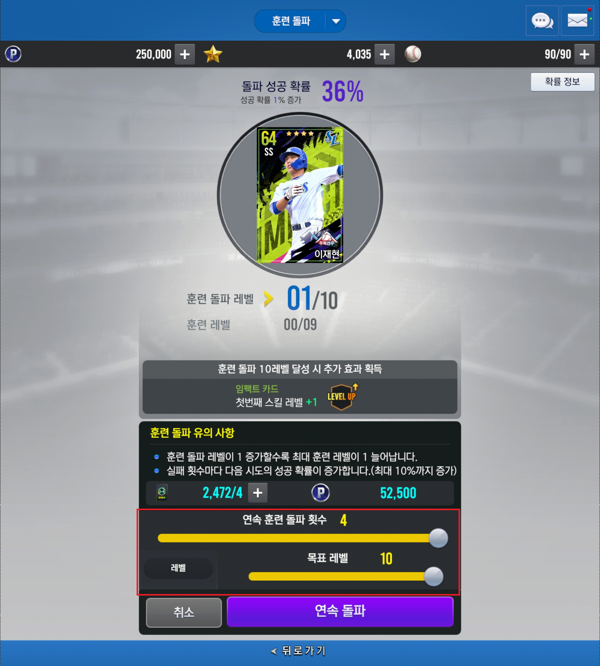 - 훈련 돌파 진행 시 진행 횟수를 직접 설정할 수 있도록 개선됩니다.
