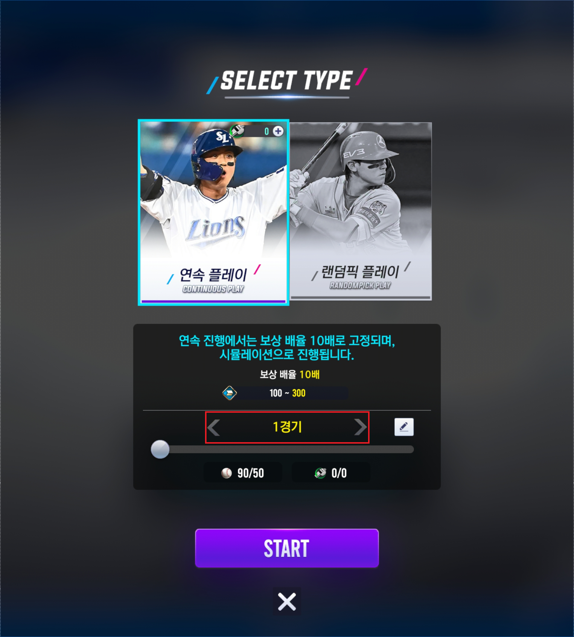 * 코인은 챌린지,클럽,홈런,조커 코인 중 200개를 선택하여 투입하실 수 있습니다.