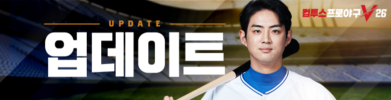 컴투스프로야구V26 V.4.10.00 업데이트가 02/25(수)에 진행될 예정입니다.