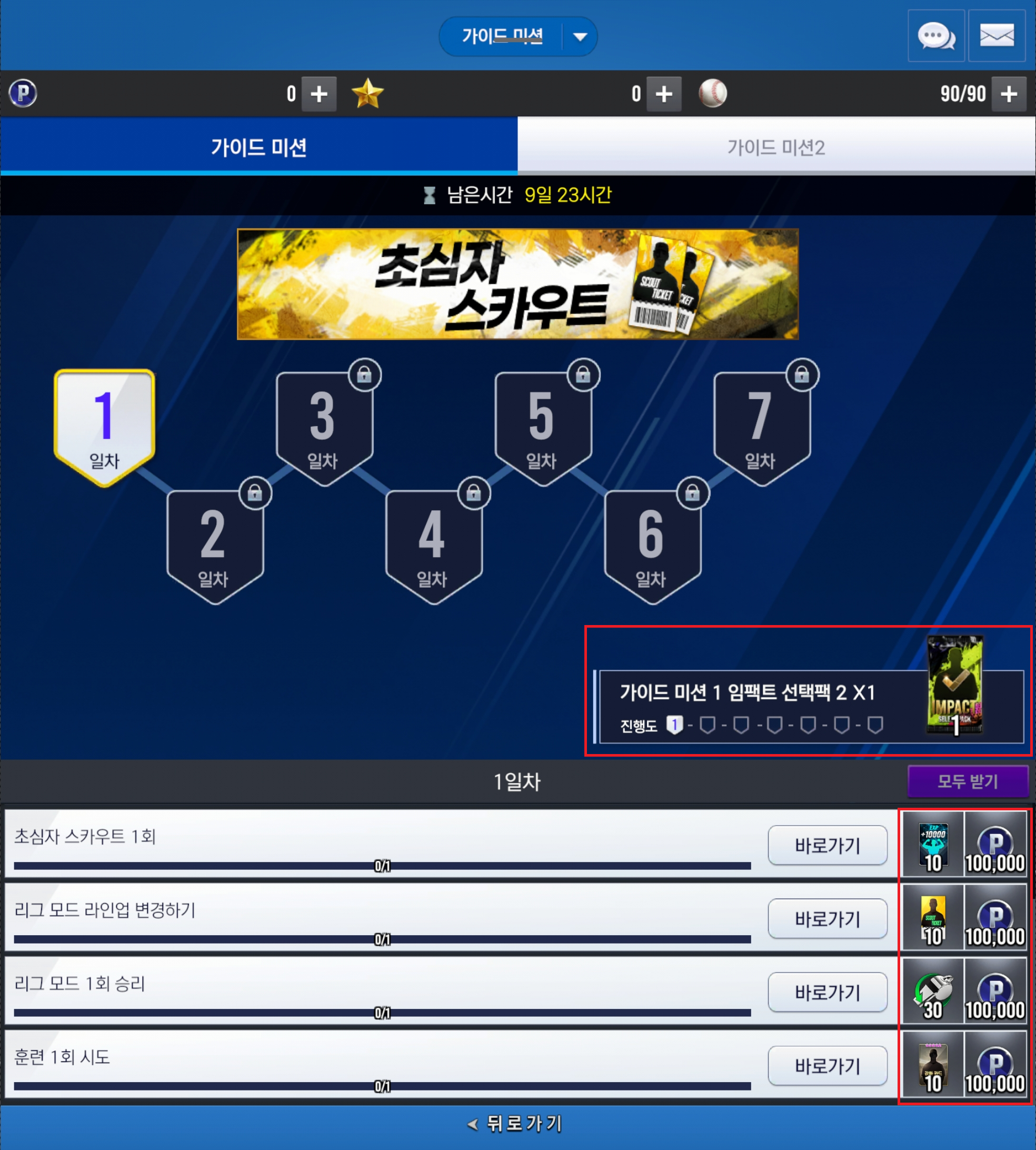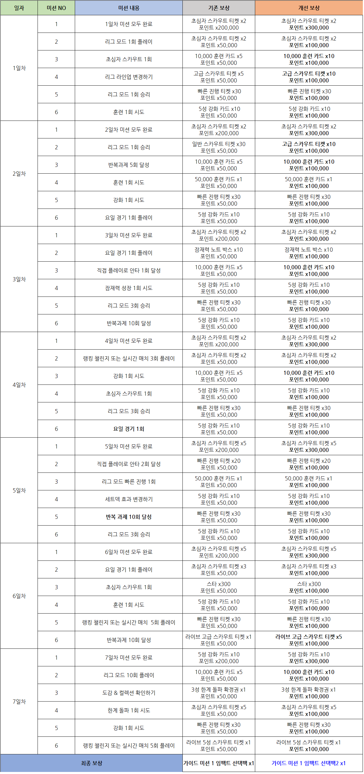 - 가이드 미션 1 보상이 리뉴얼되며 기존에 완료하셨던 구단주님도 다시 진행하실 수 있도록 재오픈됩니다.