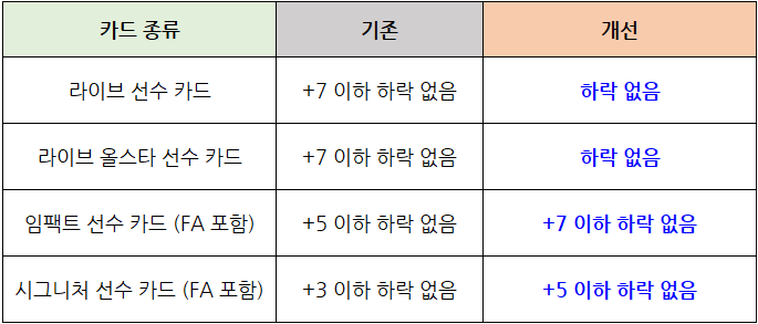 ※ 수정 이전에 해당 주력 선수 임팩트 선수카드를 보유 및 스킬이 비정상적으로 적용되어 있을 경우