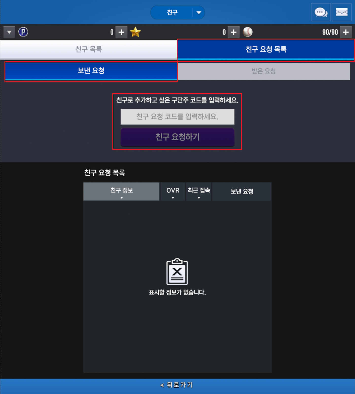 * 보낸 친구 요청/받은 친구 요청은 각각 최대 50회를 진행할 수 있습니다.