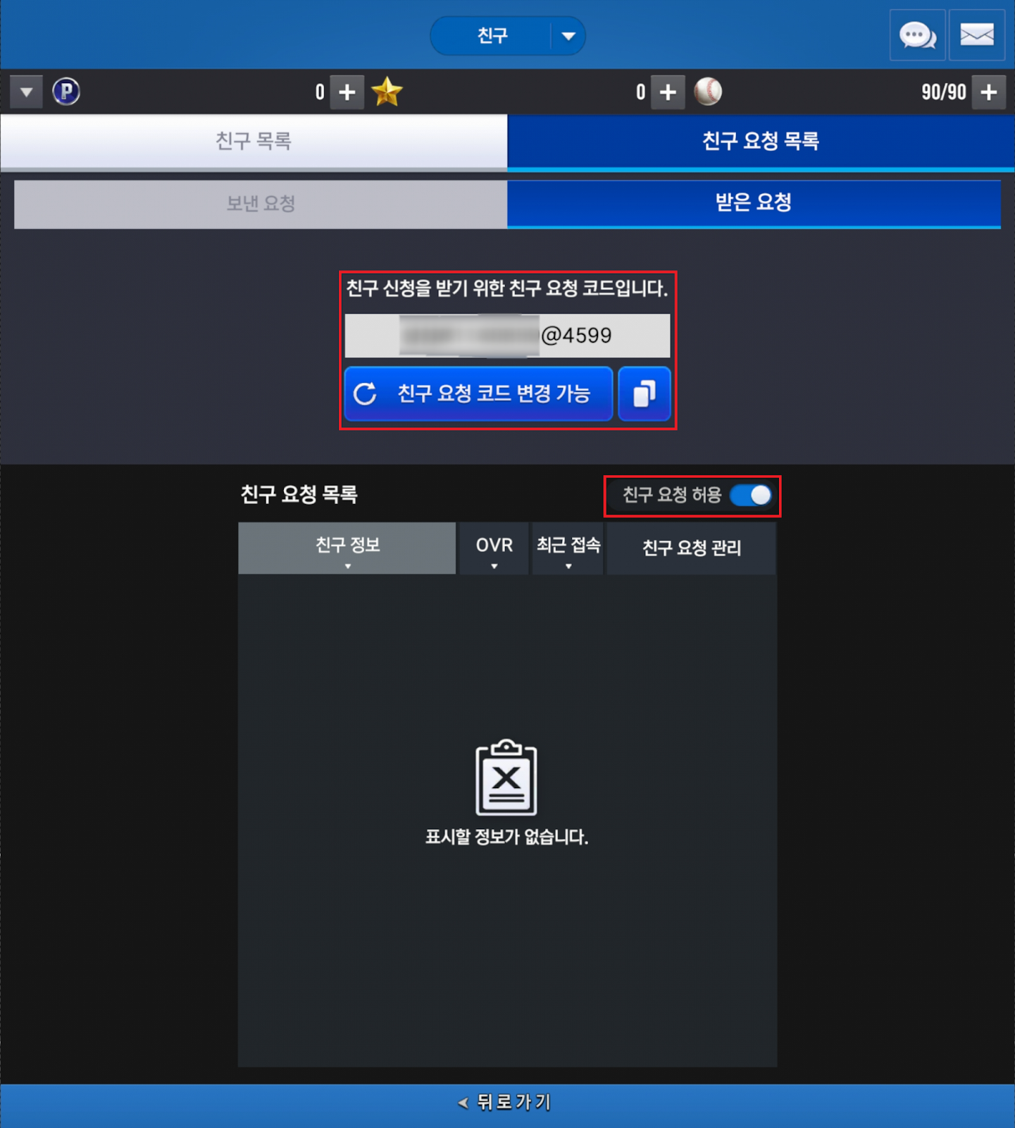 - 친구 요청 허용의 설정을 OFF하였을 경우 다른 구단주님의 친구 요청을 받을 수 없습니다.