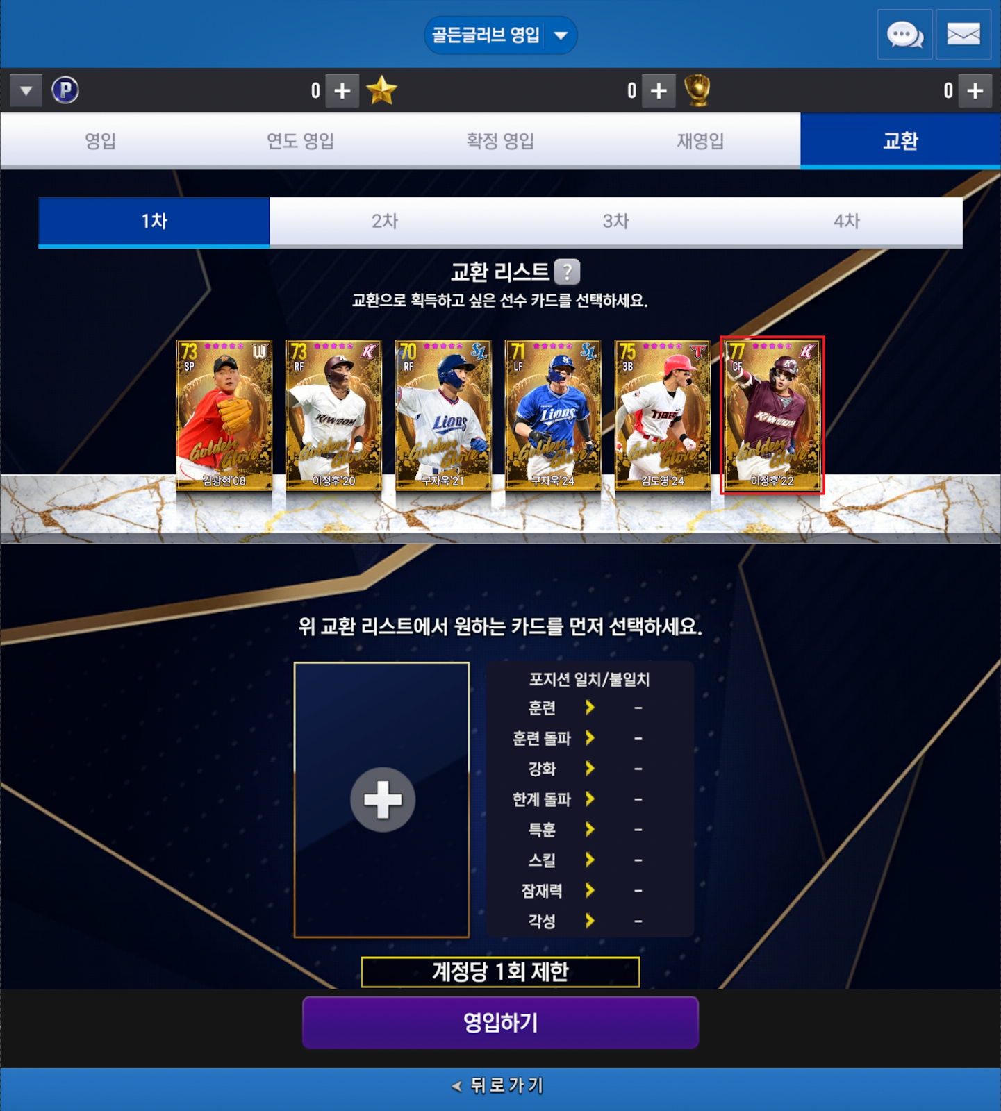 - 골든글러브 1차 교환 시스템에 선수가 추가됨에 따라 초기화가 진행되며