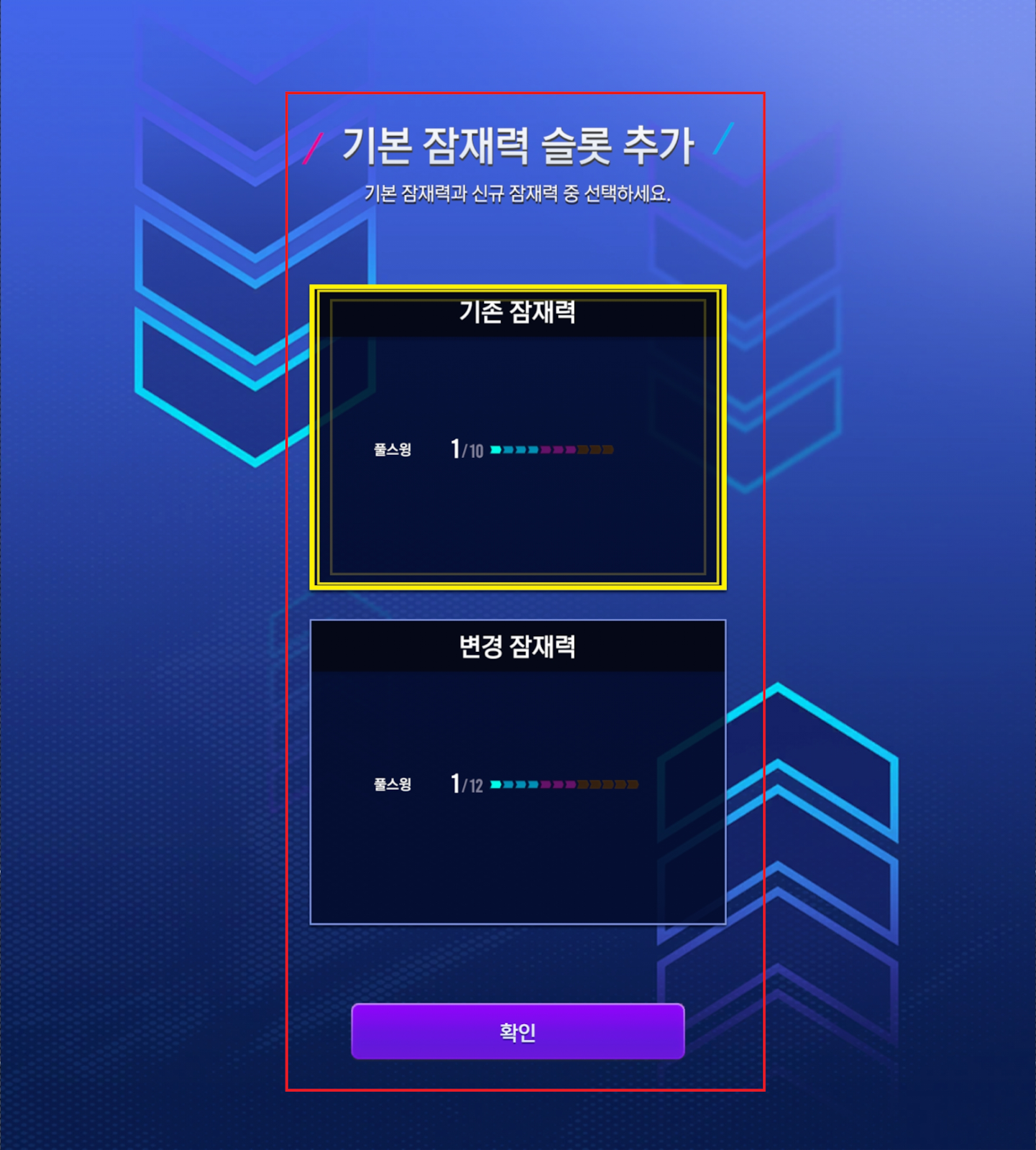 - 기본 잠재력 슬롯 추가와 각성 잠재력 슬롯 추가 기능에서 재설정 진행 시
