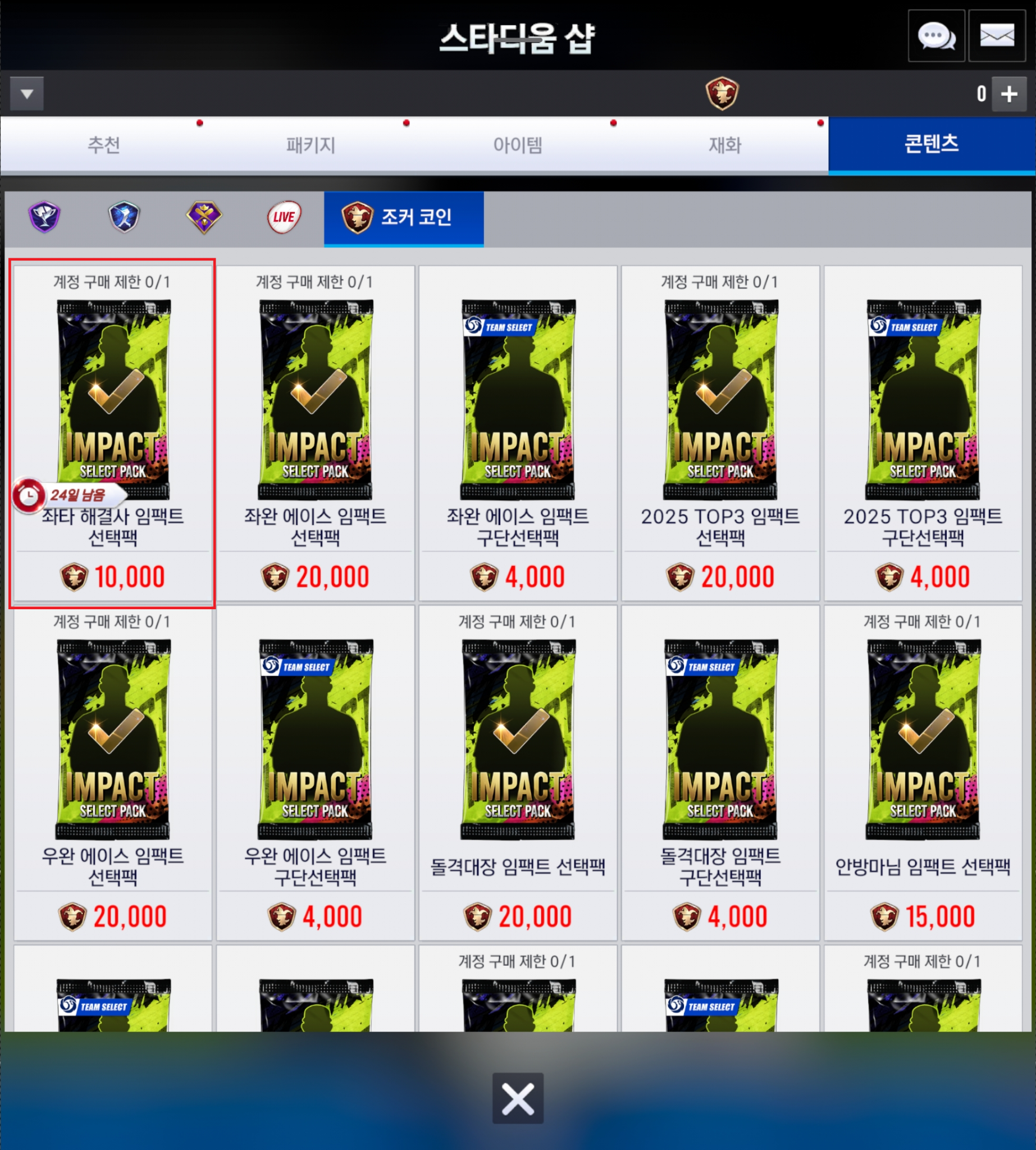 - [좌타 해결사] 임팩트 선수 카드는 조커 코인 상점에서 판매되는