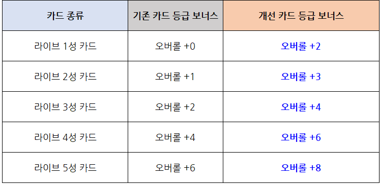 - 기존 최대 스킬 레벨이 8레벨이였던 라이브 카드와 라이브 올스타 카드의 경우