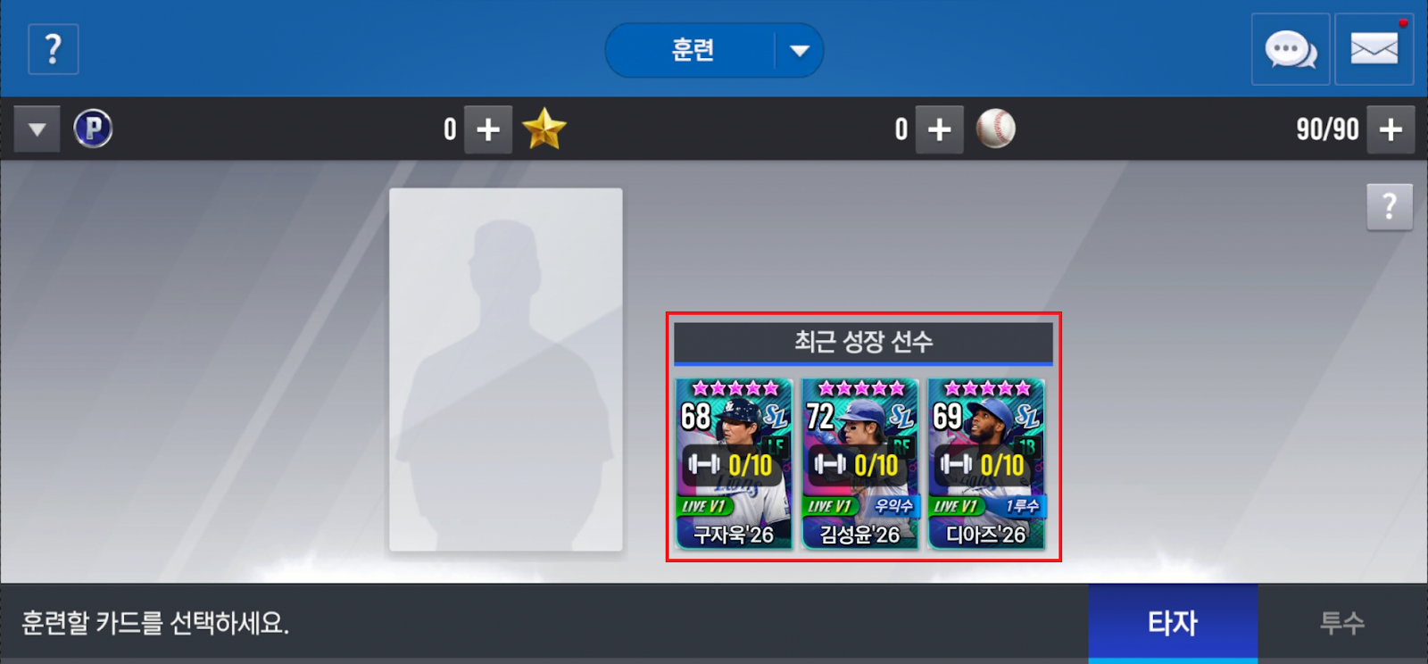 가장 최근에 선수 관리 메뉴를 통해 성장한 선수 3명이 노출됩니다.
