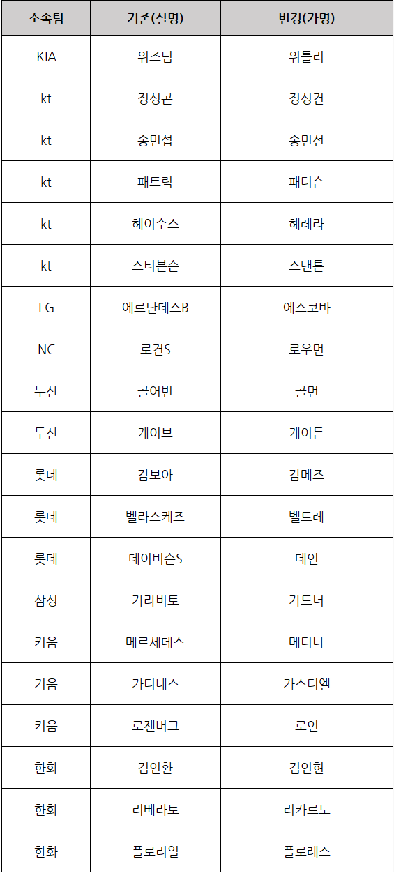 ▶ 퍼블리시티권 사용 제한으로 인한 선수 가명 처리