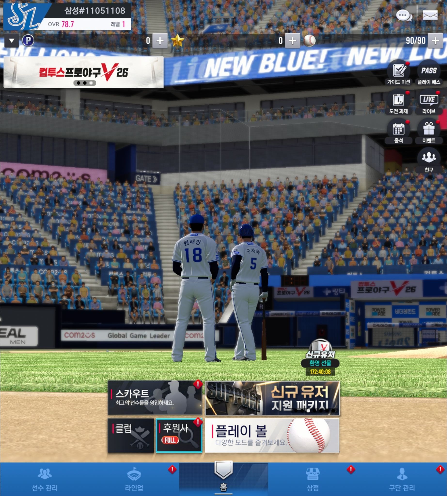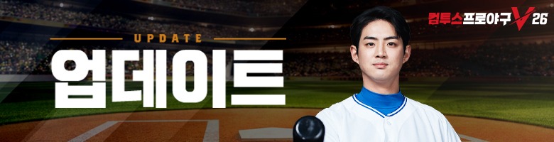 컴투스프로야구V26 V.5.01.00 업데이트가 04/22(수)에 진행될 예정입니다.