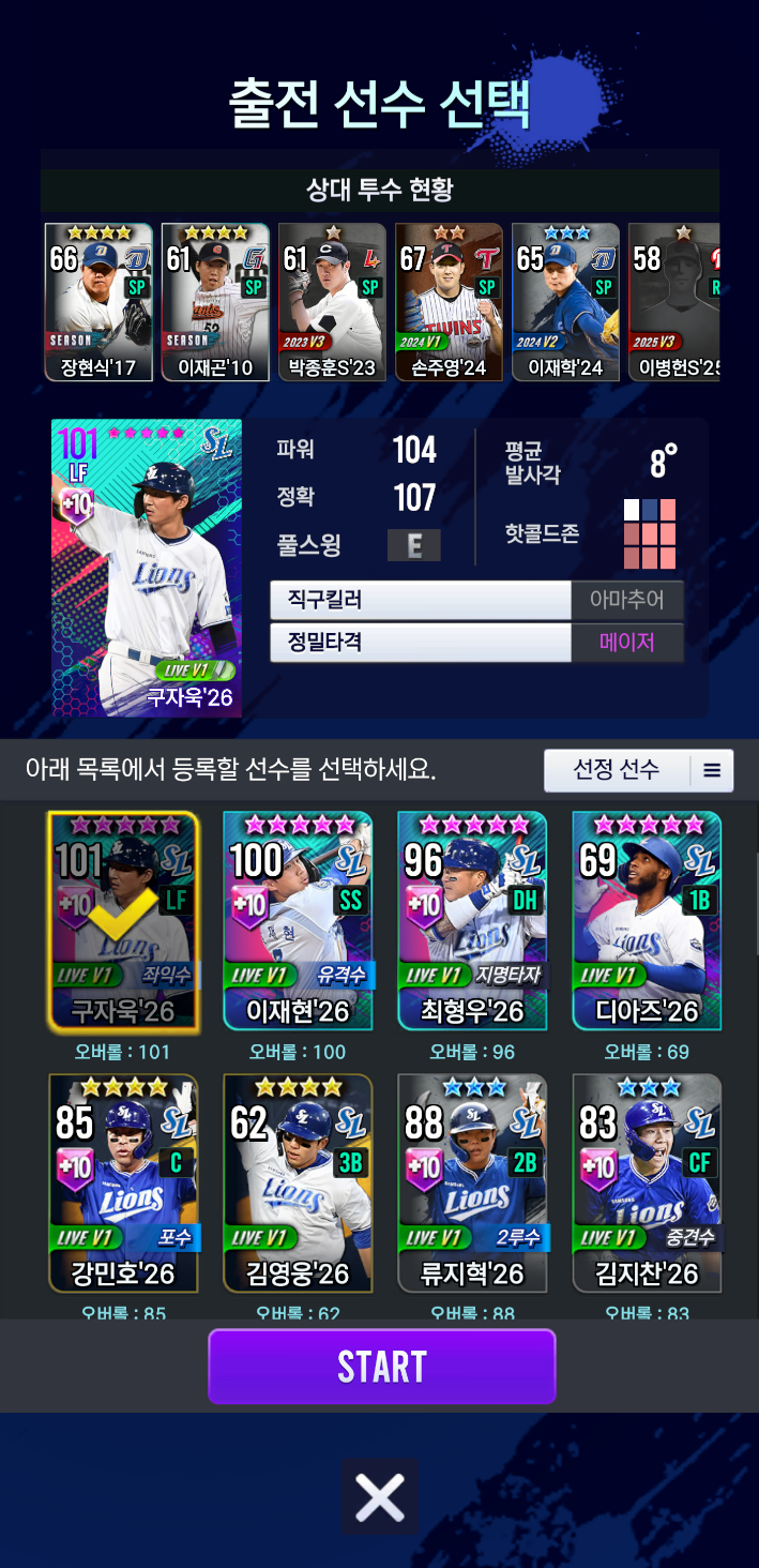 - 생성된 방의 투수는 클럽 라인업 투수 중 1명이 랜덤으로 선정됩니다.