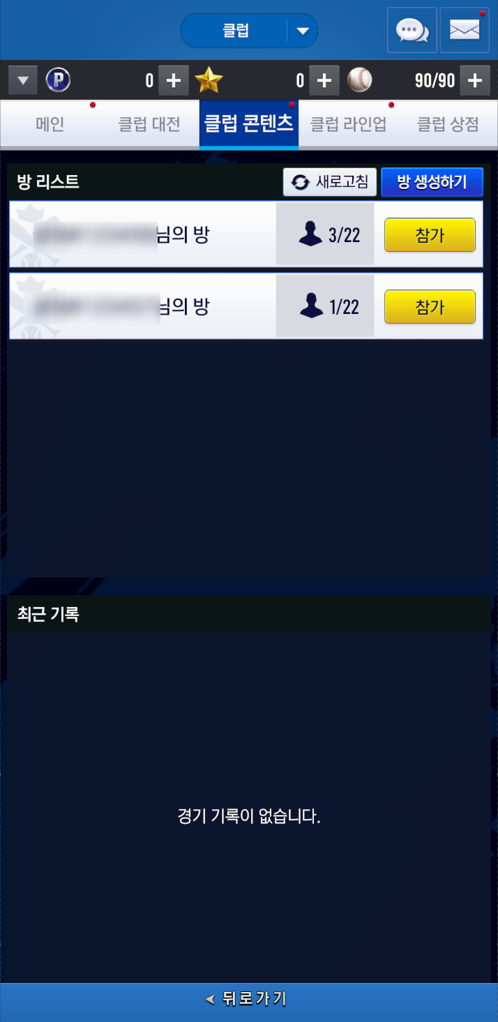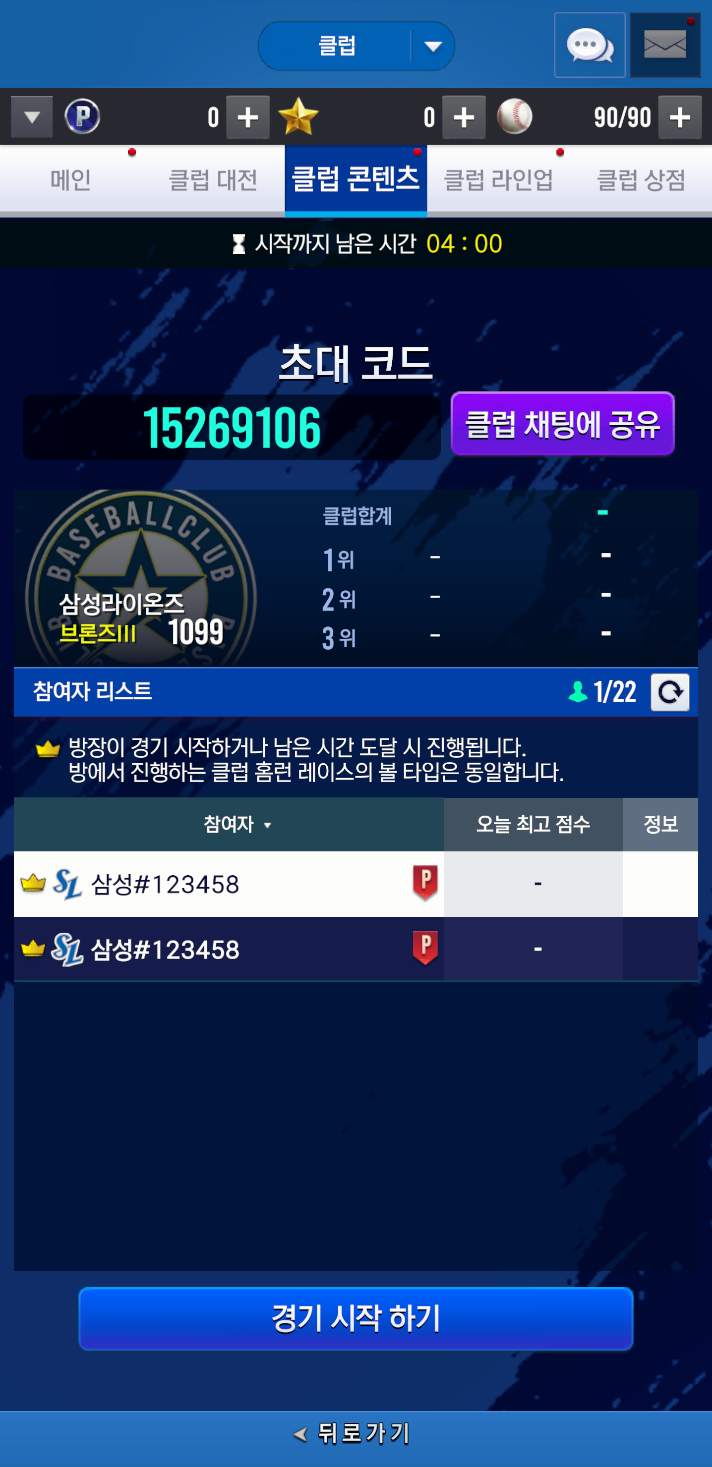 - 클럽원이 9명 이상이라면 [클럽 홈런 레이스]를 참여할 수 있습니다.