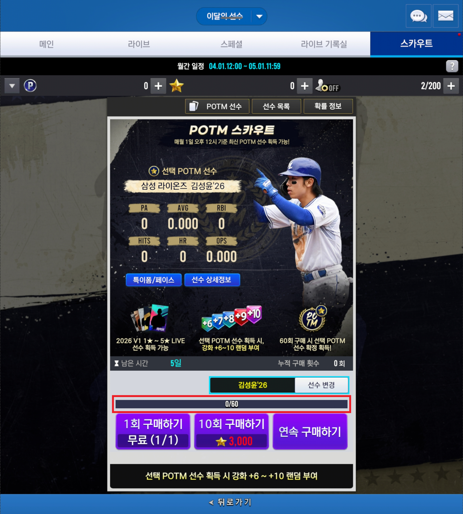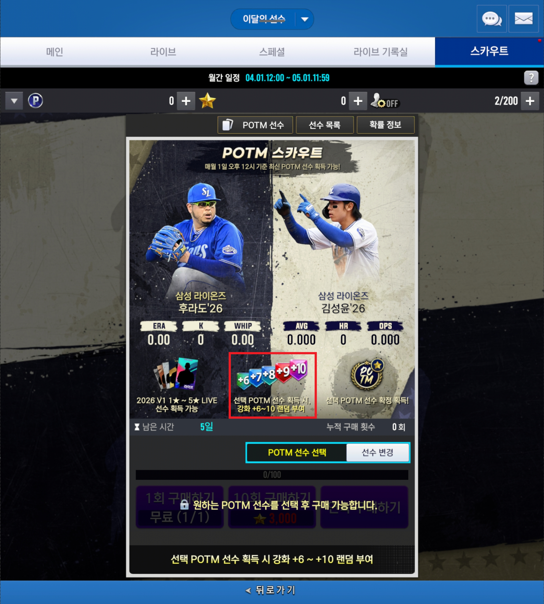 - 선택한 POTM 선수를 확정적으로 획득하는 스카우트 횟수가 5성 기준 80회에서 60회로 조정됩니다.