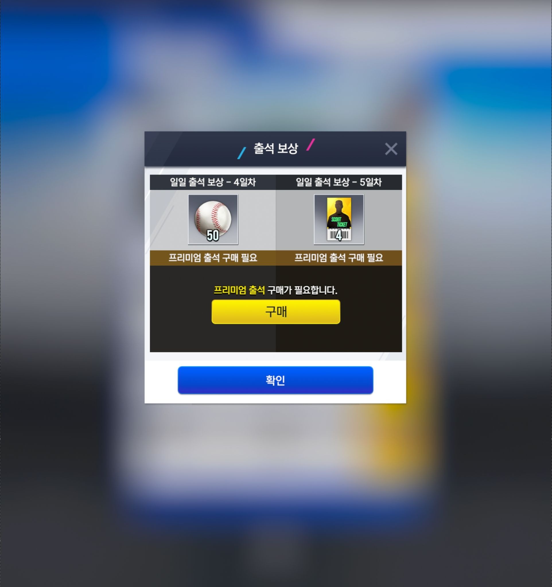 - 프리미엄 출석 체크 종료 전 구매 시 이전 출석 체크 보상까지 획득할 수 있습니다.