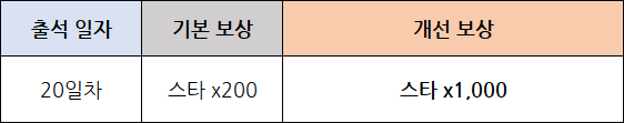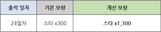 - 업데이트 시점 일일 출석 체크와 프리미엄 출석 체크의 일자에 따라 아래와 같이 조치될 예정입니다.