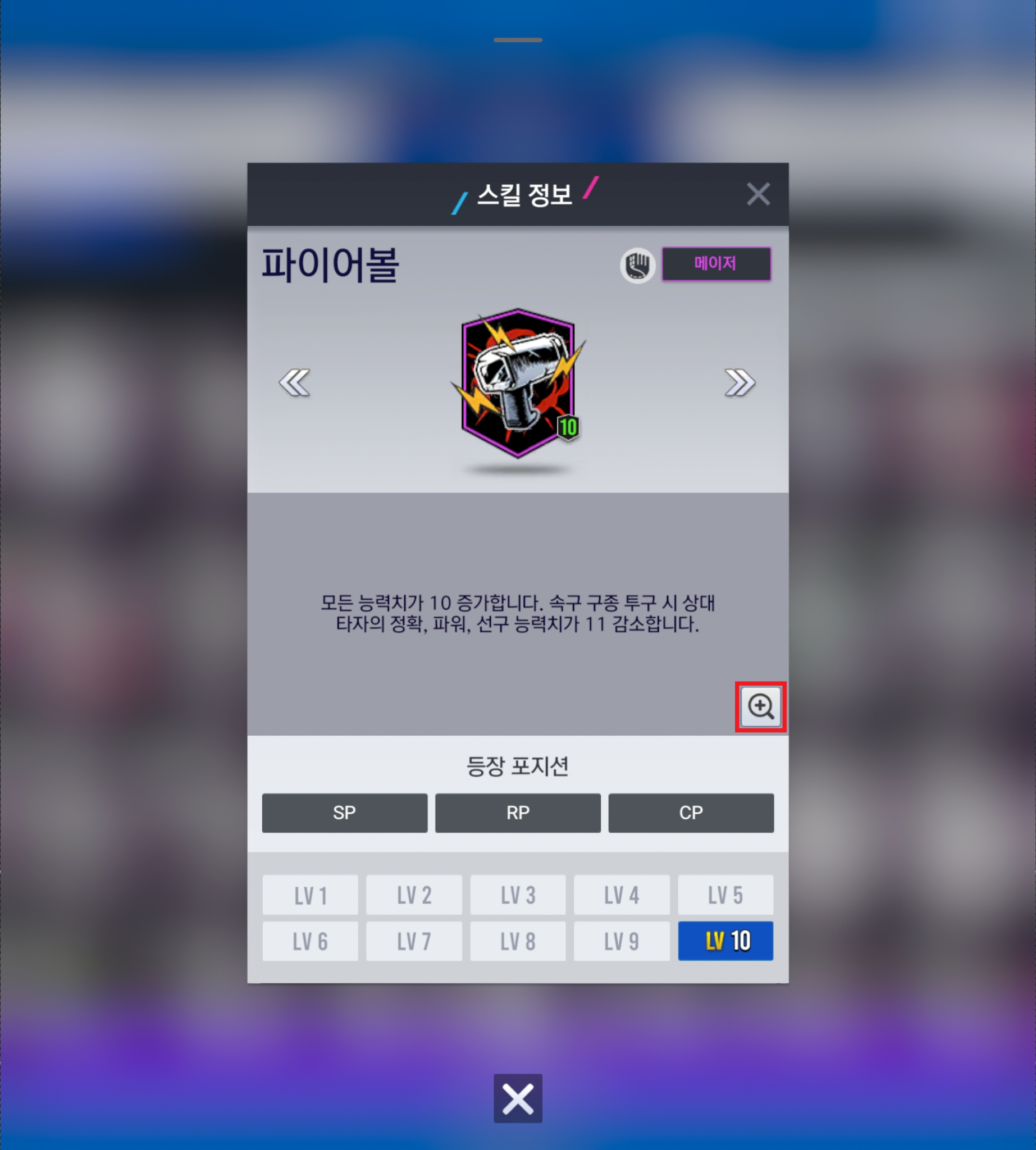 - (+)돋보기 버튼을 사용하여 스킬의 상세 설명을 확인할 수 있습니다.