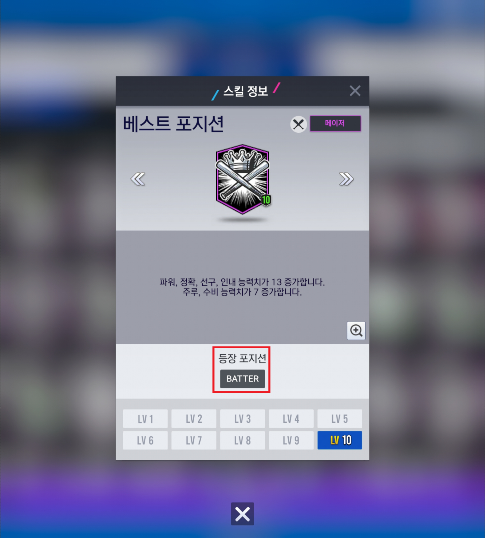 - 타자 스킬이 모든 포지션에 적용될 경우 등장 포지션이 [BATTER]로 표기됩니다.