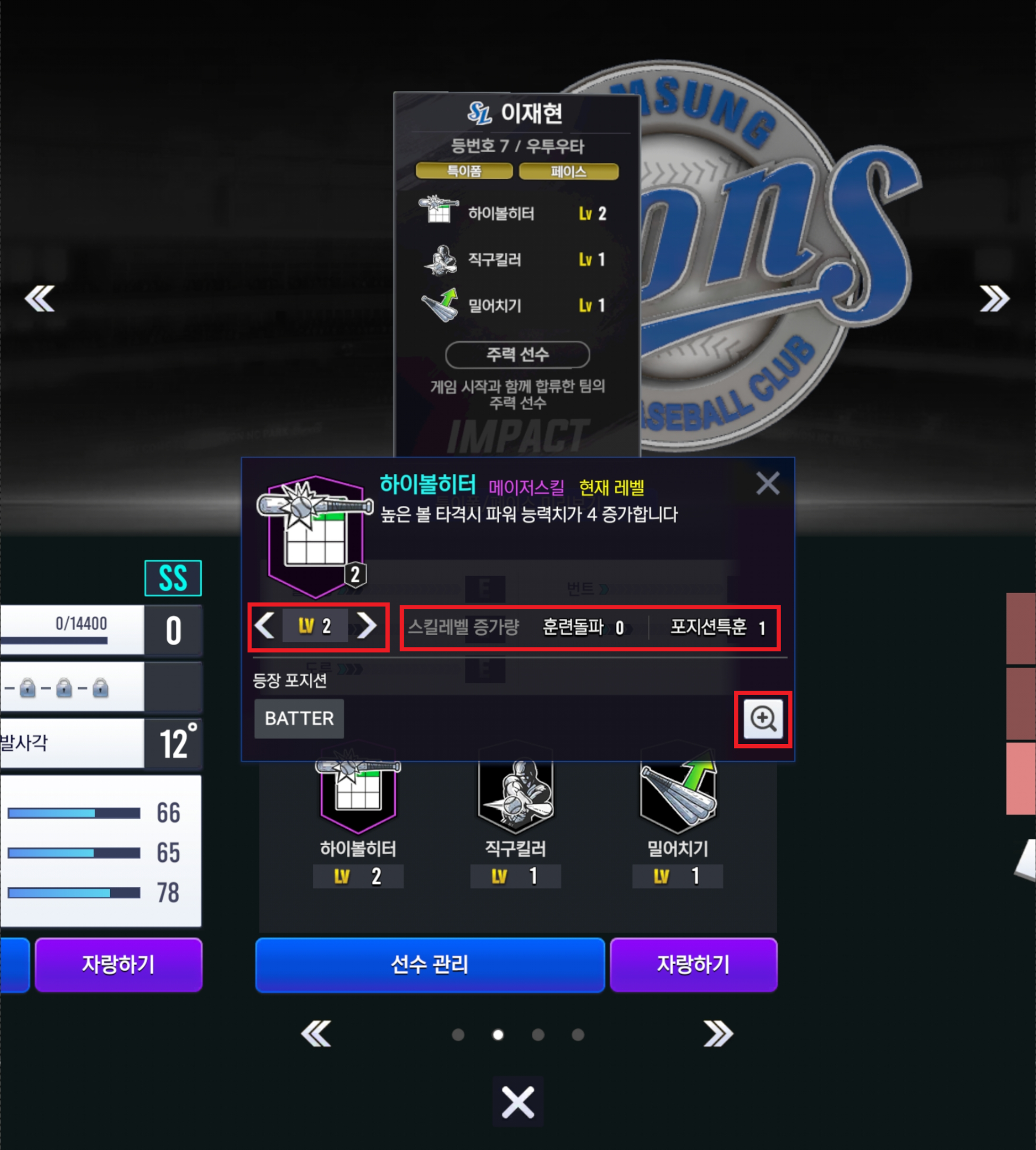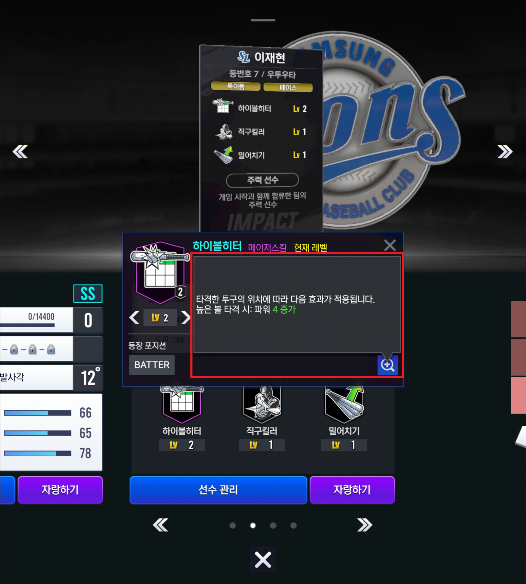 - 선수별 스킬 확인 화면도 개선되어, 스킬 상세 설명과 레벨별 효과를 확인할 수 있습니다.