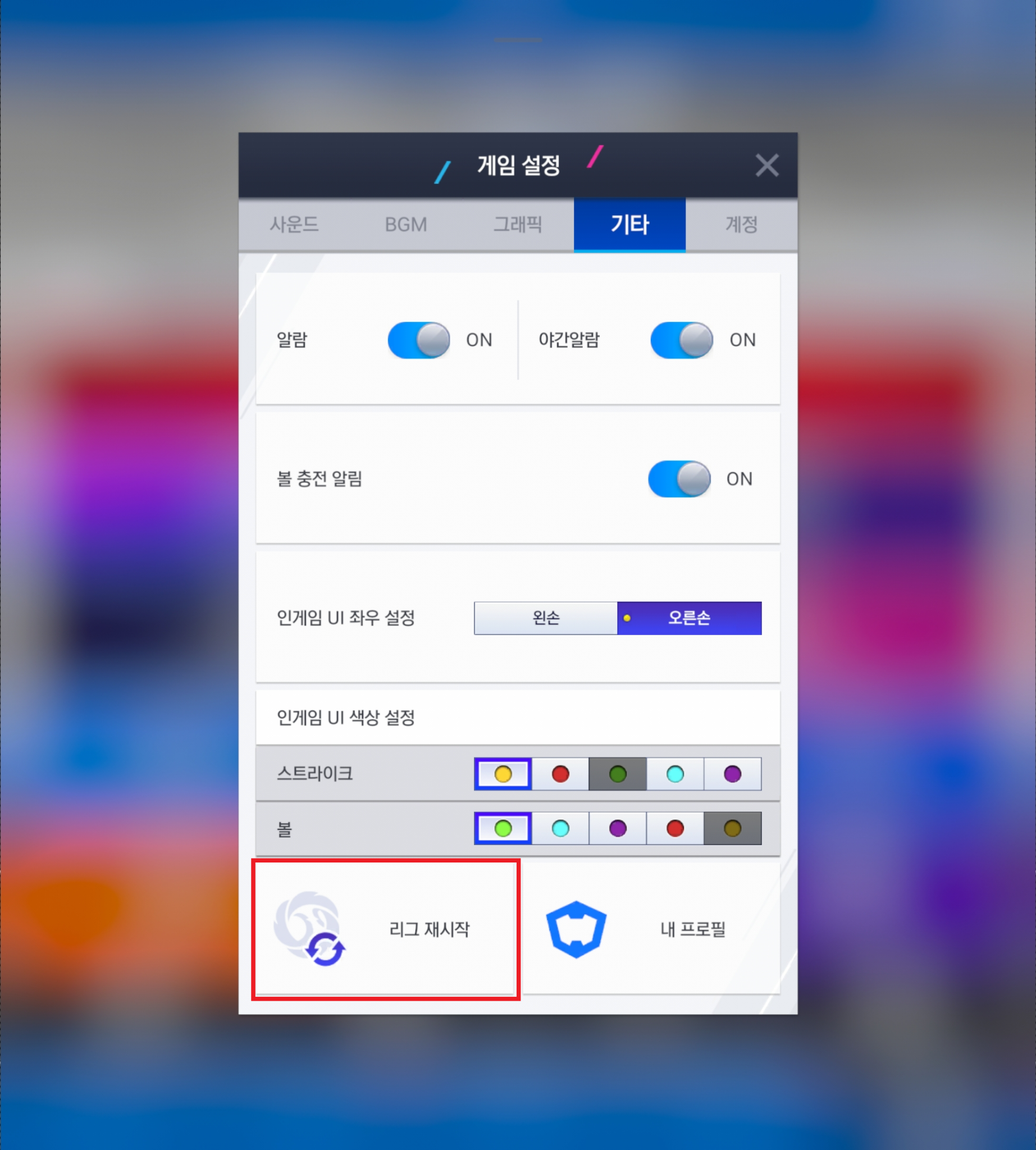 - 구단 관리>설정>게임 설정에서 [리그 초기화]명칭이 [리그 재시작]으로 변경됩니다