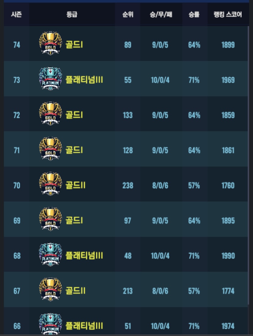 저희 클럽은 대진운에 따라 다르지만 보통 in 100을 목표로 하고 있는 클럽입니다.