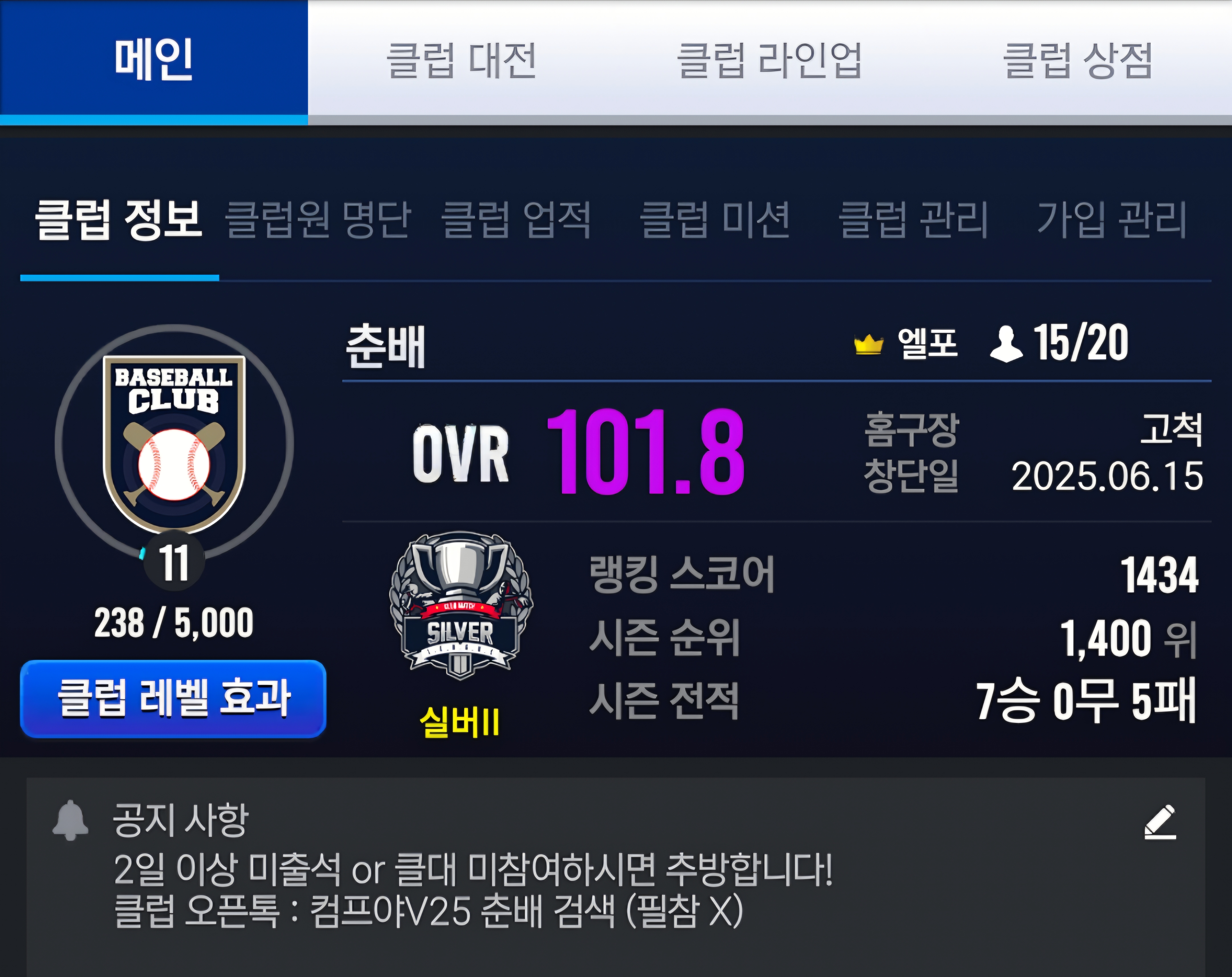 클럽 홍보 게시판 [춘배] 오래오래 함께하실 분들 구합니다 (15/20) 엘포 2025-09-26 12:46 25 0 공유 공유 URL 복사 페이스북 왓츠앱 카카오톡 라인 레딧 닫기 공유 함께 클럽 키워나가실 분들 환영합니다 ㅎㅎ #클럽 #컴프야 #컴프야클럽 #춘배 0 0 댓글 0