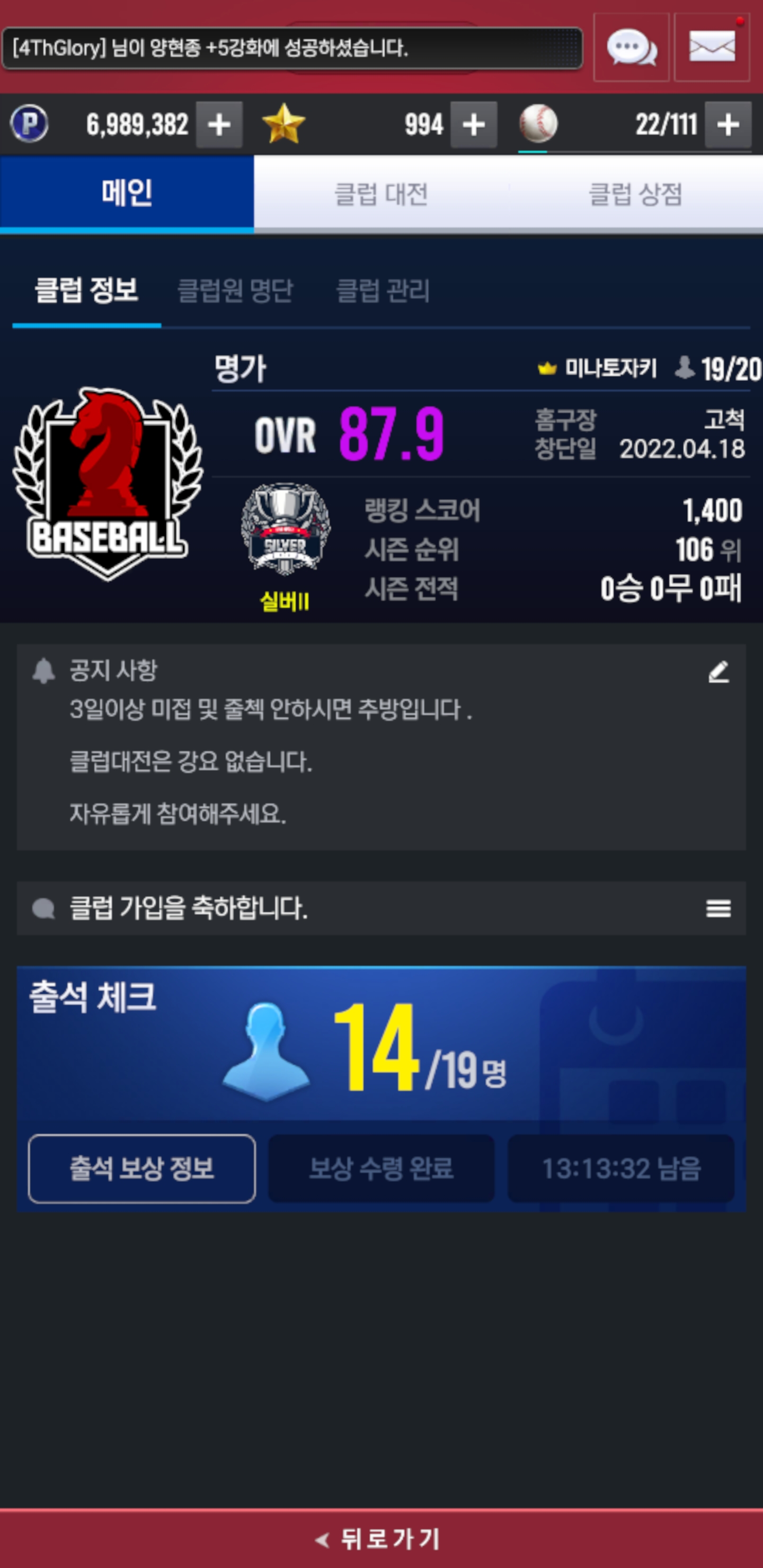 클럽 홍보 게시판 클럽 명가 클럽원 구합니다 (19/20) 미나토자키 2022-10-02 10:49 104 0 공유 공유 URL 복사 페이스북 왓츠앱 카카오톡 라인 레딧 닫기 공유 출석 꾸준히 하실 분 자동승인입니다 0 0 댓글 0