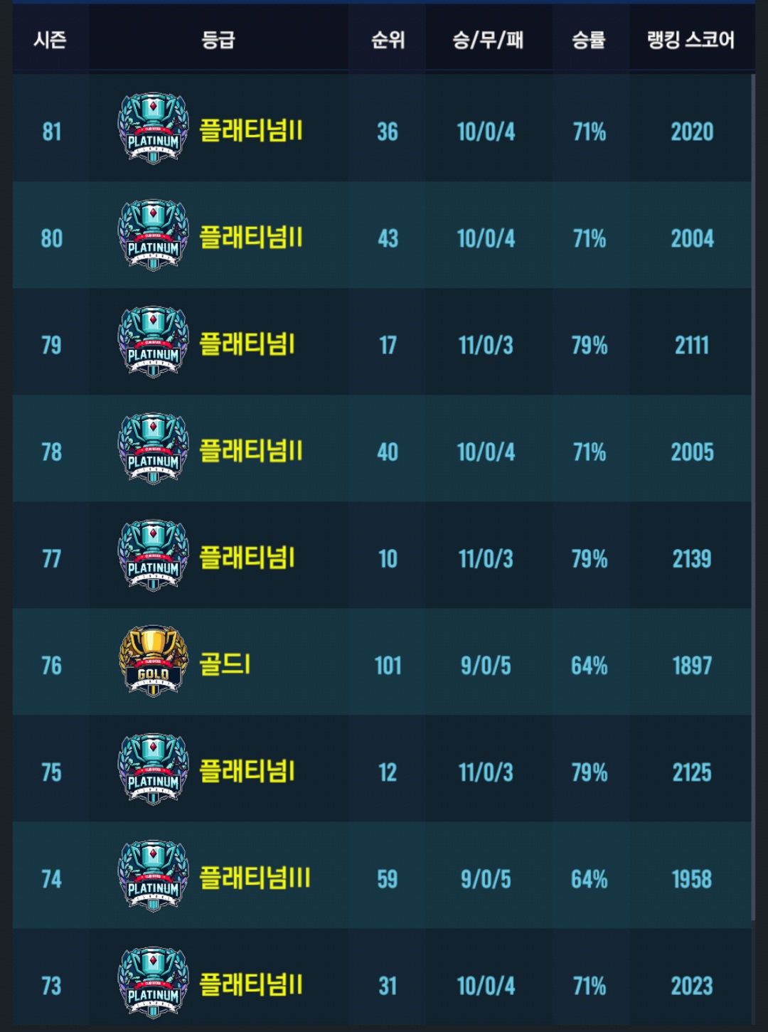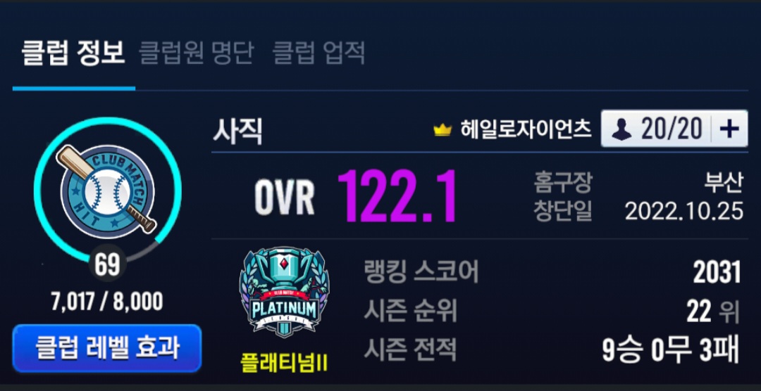 꾸준히 클럽대전 in50을 기록 중이며, 커하는 10등입니다.