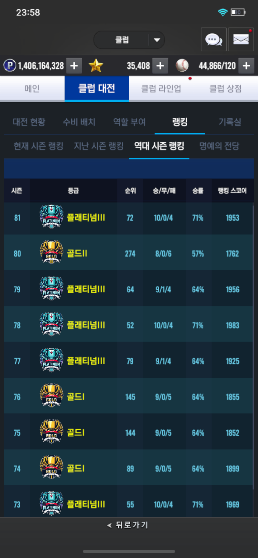 매 시즌 IN100을 목표로 매 시즌마다 열심히 달려가고 있습니다.