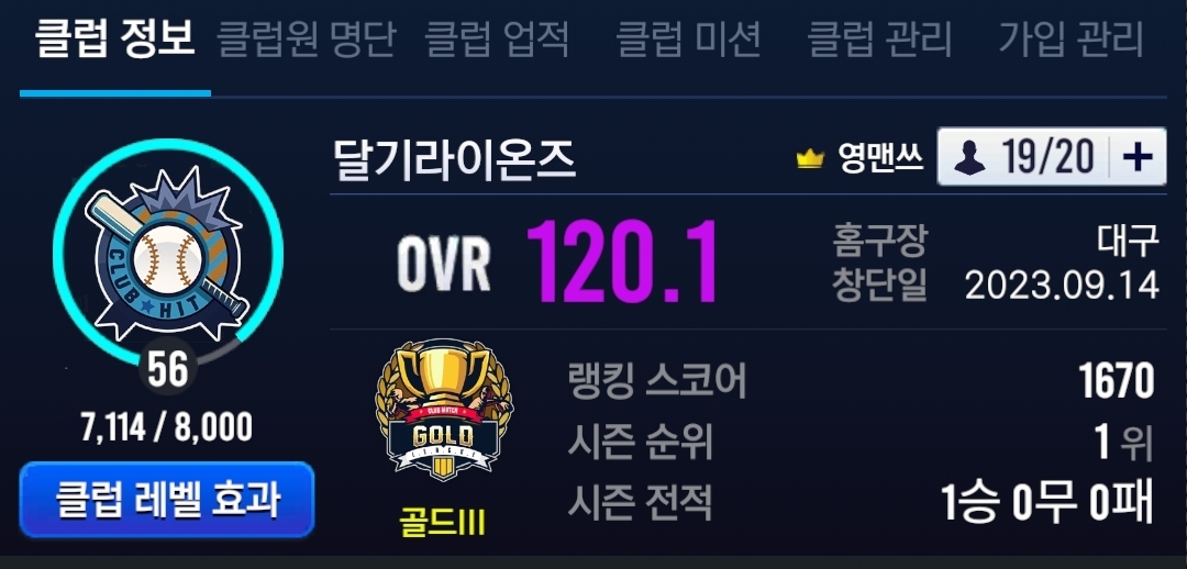 7) 클럽레벨 : 56
